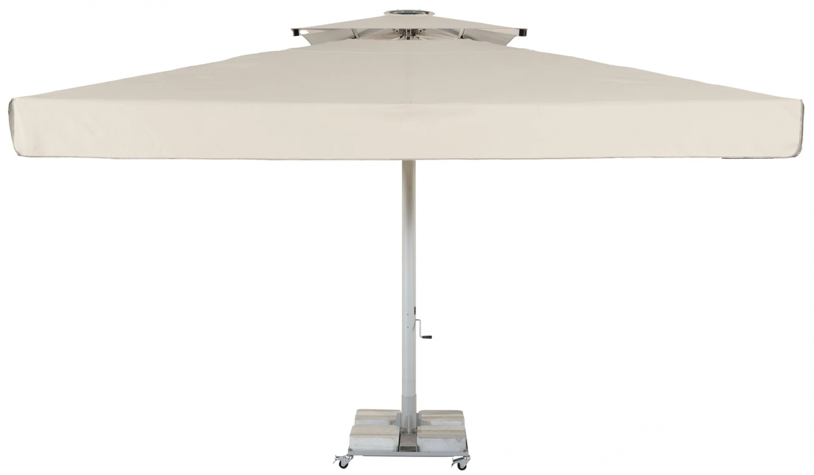Mega Telescopic - профессиональный телескопический зонт с центральной опорой из алюминия Ø100 мм, которая обеспечивает высокую устойчивость. Модель идеально подходит для кафе и ресторанов, придает им роскошную атмосферу. Преимущество этой модели перед Mega Telescopic Manual в механизме открытия - здесь он более комфортный, лебедочный.