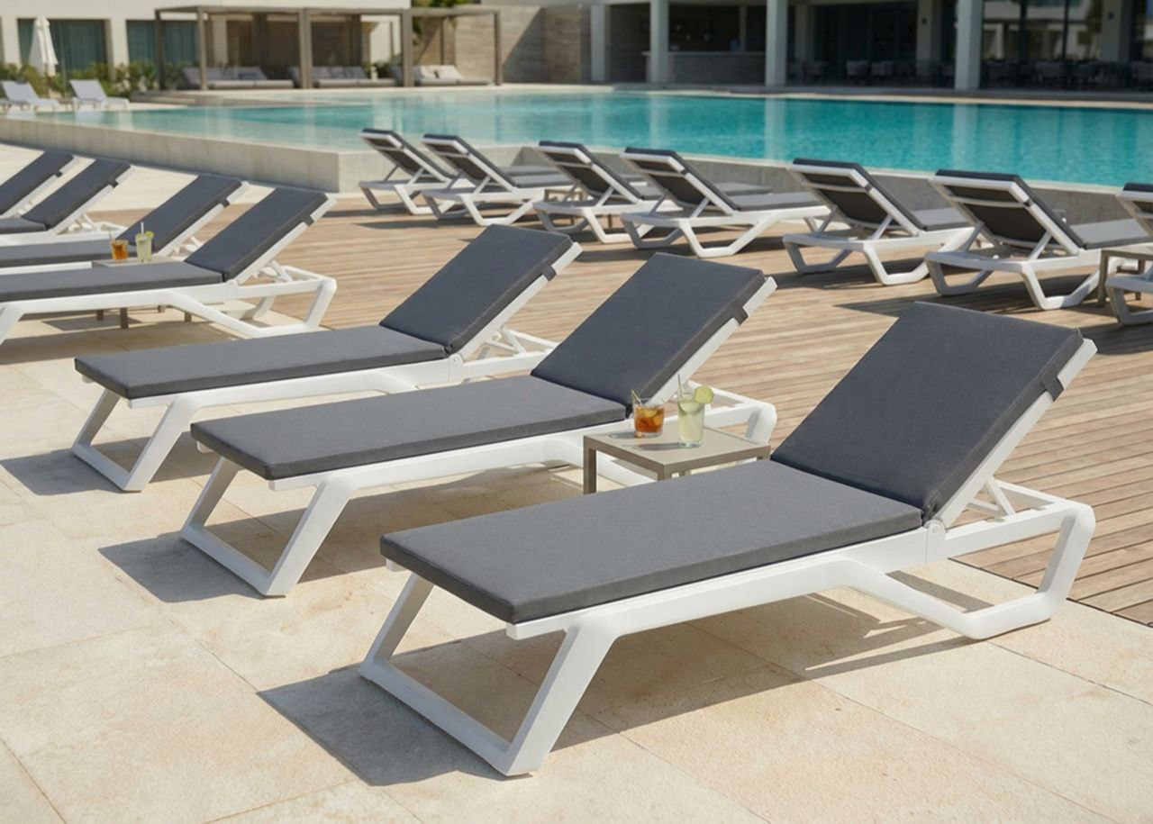 Матрас для шезлонга - продуманная конструкция и практичные материалы, специально подобранные для интенсивной эксплуатации на улице. Сетчатая тканья, используемая на поверности матраса обеспечивает комфорт при лежании и способствует воздухообмену. Под этой сеткой размещено водо- и воздухонепроницаемое защитное покрытие, которое предотвращает проникновение влаги и пыли к внутреннему пенополиуретановому наполнителю. Такая защита критически важна для профессиональных объектов: отелей, курортов и бассейнных зон, где матрасы подвержены частому воздействию воды, брызг и повышенной влажности.