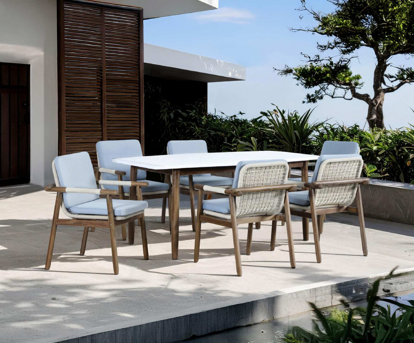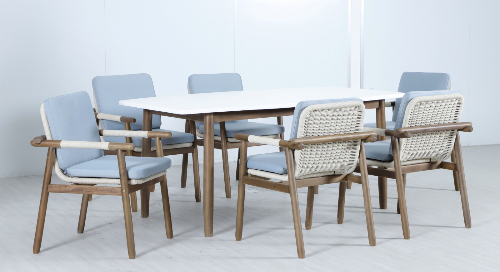 Apoyo - это стильная коллекция уличной мебели из массива АКАЦИИ, в которой сочетаются натуральное верёвочное (роуп) плетение, тёплая текстура дерева и комфортные подушки. Превосходное решение для террасы или веранды, подходящее для тех, кто ценит долговечность и эстетический вид уличной мебели