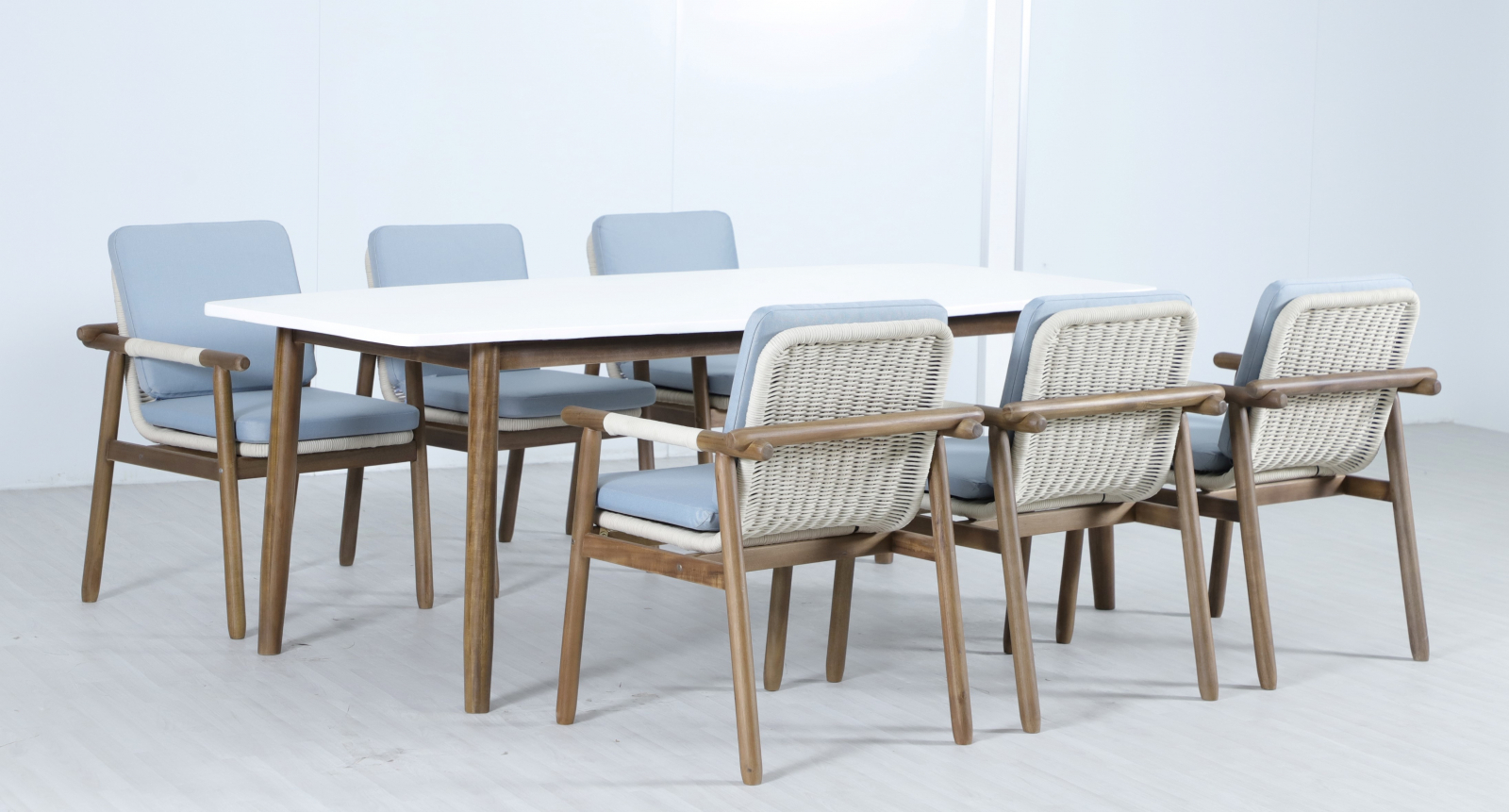 Apoyo - это стильная коллекция уличной мебели из массива АКАЦИИ, в которой сочетаются натуральное верёвочное (роуп) плетение, тёплая текстура дерева и комфортные подушки. Превосходное решение для террасы или веранды, подходящее для тех, кто ценит долговечность и эстетический вид уличной мебели