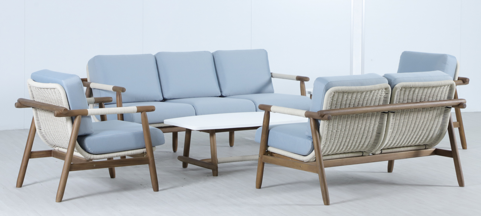 Apoyo - это стильная коллекция уличной мебели из массива АКАЦИИ, в которой сочетаются натуральное верёвочное (роуп) плетение, тёплая текстура дерева и комфортные подушки. Превосходное решение для террасы или веранды, подходящее для тех, кто ценит долговечность и эстетический вид уличной мебели