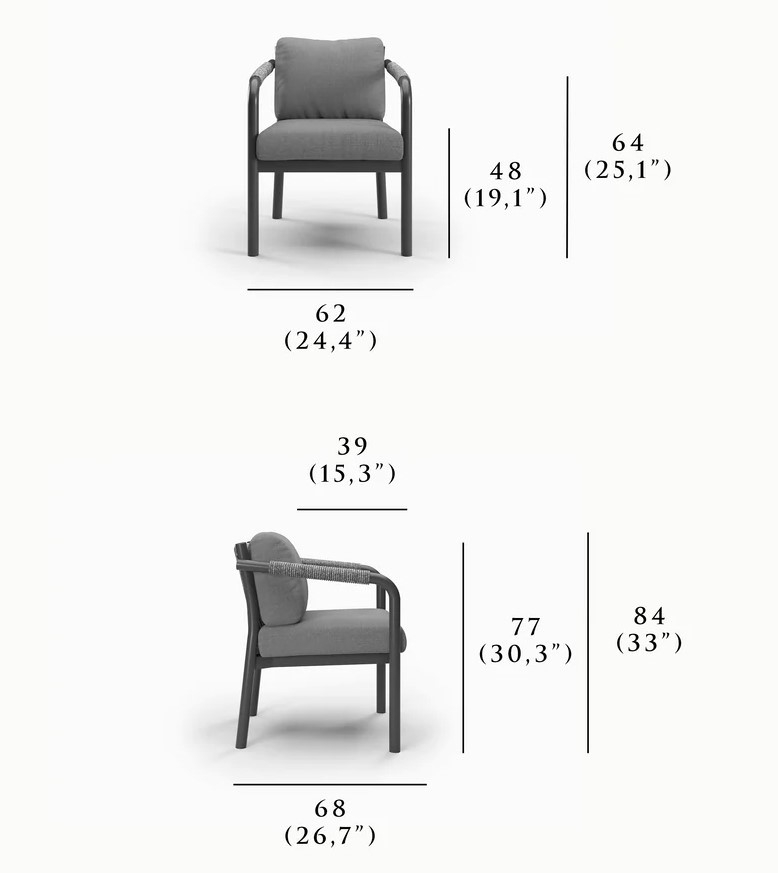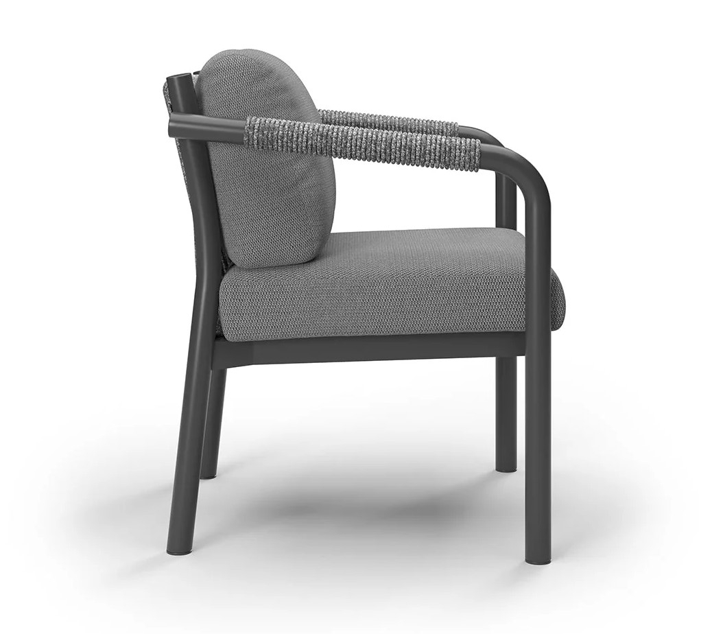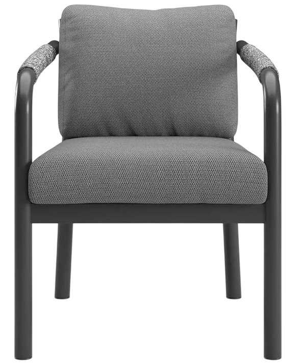 Кресло Lorvain демонстрирует сдержанную элегантность и точность форм. Сочетает прочность и эстетическую утончённость: устойчивая к воздействию влаги и перепадам температур алюминиевая рама с порошковым покрытием обеспечивает долговечность при уличной эксплуатации, а детали из плетеной вручную акриловой веревки придают изделию благородную фактуру и визуальную лёгкость. Кресло идеально для открытых пространств: террас, патио или садовых зон отдыха.