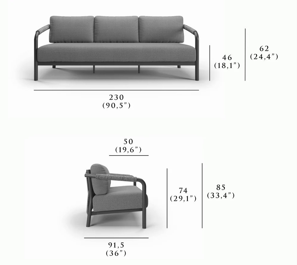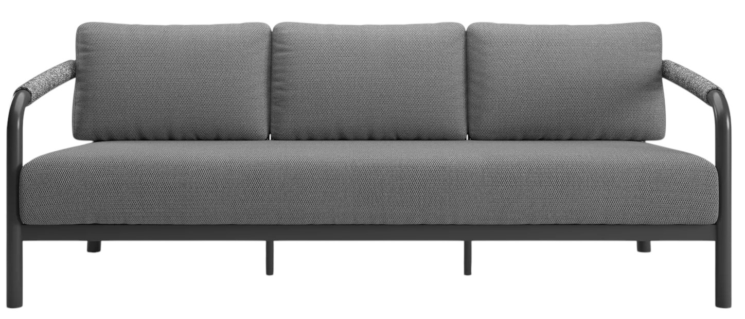 Трехместный диван Lorvain демонстрирует сдержанную элегантность и точность форм. Сочетает прочность и эстетическую утончённость: устойчивая к воздействию влаги и перепадам температур алюминиевая рама с порошковым покрытием обеспечивает долговечность при уличной эксплуатации, а детали из плетеной вручную акриловой веревки придают изделию благородную фактуру и визуальную лёгкость. Идеален для открытых пространств: террас, патио или садовых зон отдыха.