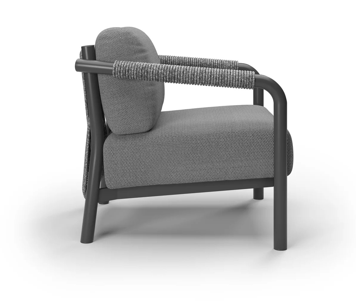 Коллекция включает в себя кресло, двухместный и трехместный диваны, журнальный столик, шезлонг и кушетку, образуя полноценный комплект мебели для отдыха на открытом воздухе, выдержанный в едином стиле. Обеденный гарнитур продолжает эту концепцию благодаря тому же структурированному алюминиевому каркасу, обеспечивая визуальную гармонию всех типов мебели.