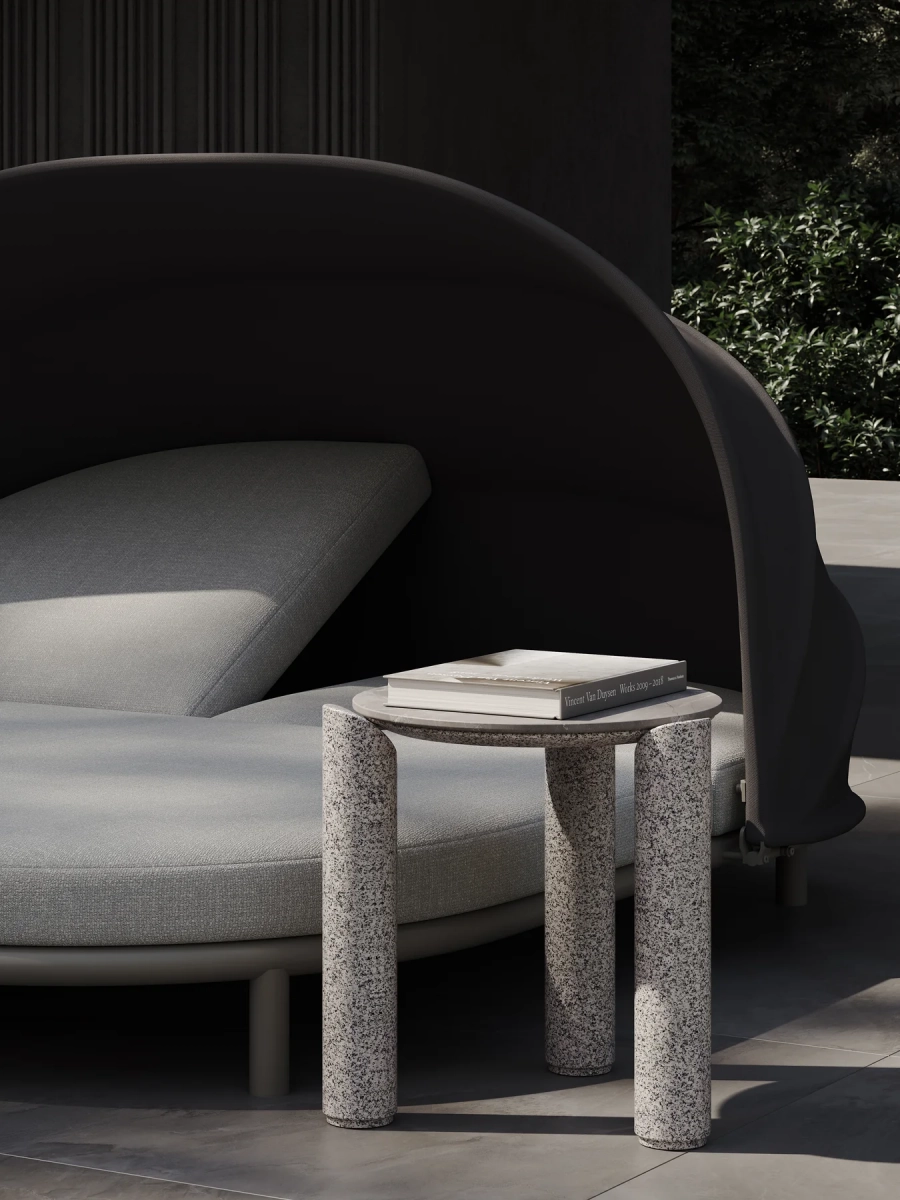 Кофейный столик из коллекции Lorvain сочетает четкие, сдержанные контуры серии с естественной фактурой натурального песчаника. Масси́вный каркас из песчаника придаёт модели ощущение устойчивости и тепла, а столешница из спеченного камня обеспечивает высокую износостойкость и простоту ухода - идеальное сочетание эстетики и практичности для террасы или веранды.
