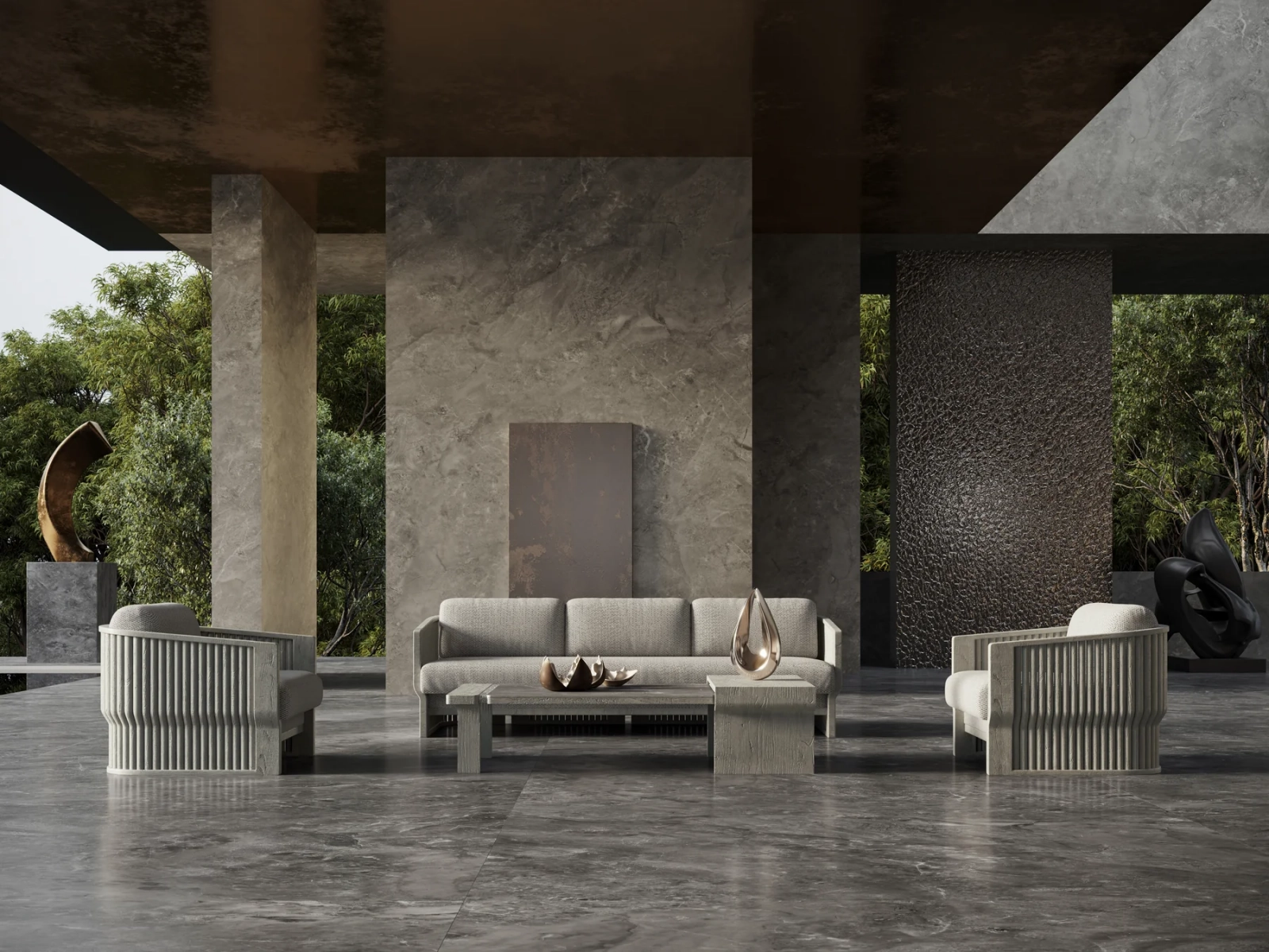 Коллекция включает в себя комплект мебели для отдыха, обеденный комплект, лаунж-лежак, каждый элемент которой отличается мягкими линиями и теплой, приятной на ощупь текстурой. Применение специально разработанных материалов позволяет использовать коллекцию на открытом воздухе в полной безопасности, обеспечивая максимальную защиту от атмосферных воздействий без ущерба для эстетики и комфорта.