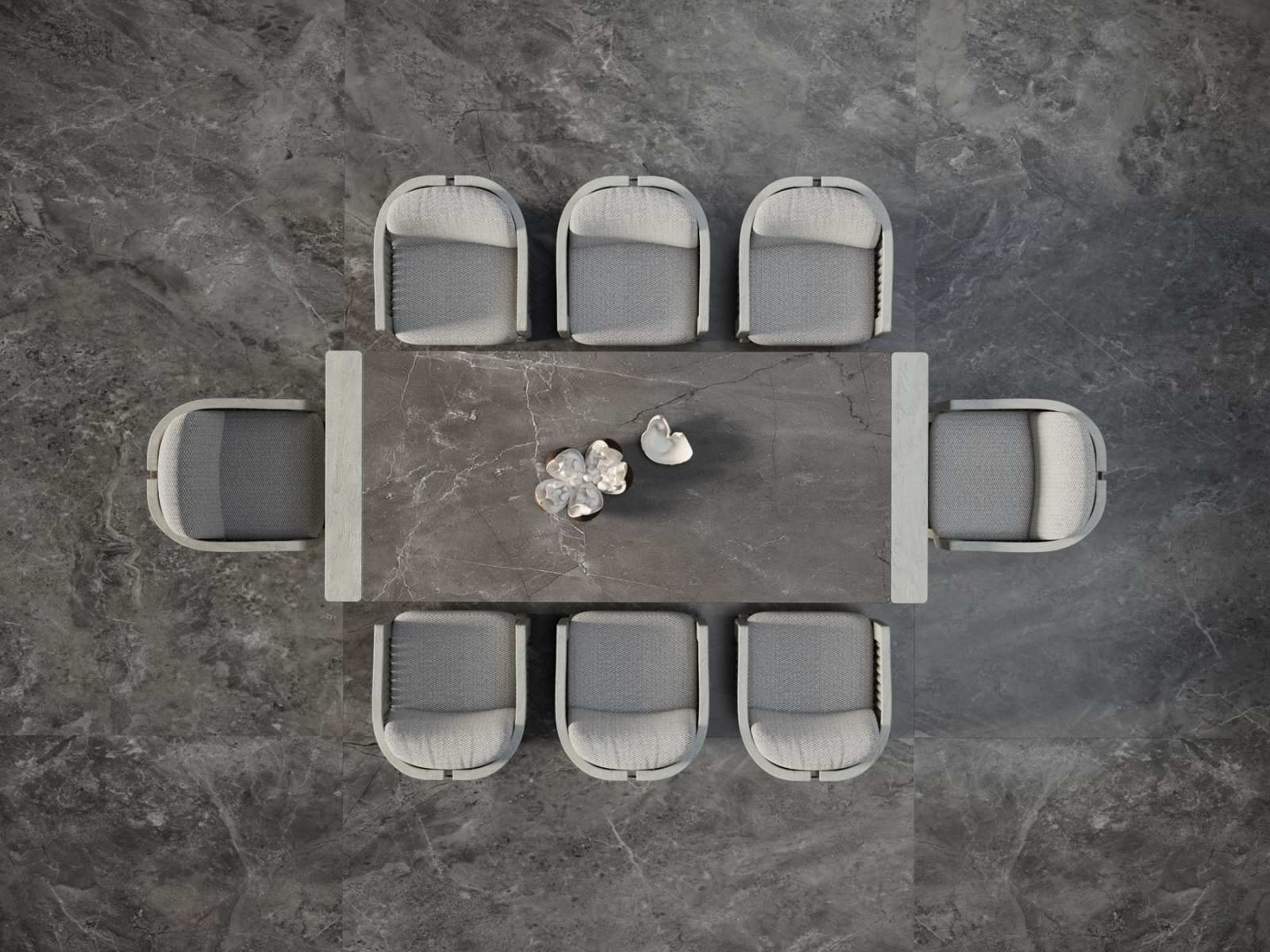 Коллекция включает в себя комплект мебели для отдыха, обеденный комплект, шезлонг и кушетку, каждый элемент которой отличается мягкими линиями и теплой, приятной на ощупь текстурой. Применение специально разработанных материалов позволяет использовать коллекцию на открытом воздухе в полной безопасности, обеспечивая максимальную защиту от атмосферных воздействий без ущерба для эстетики и комфорта.