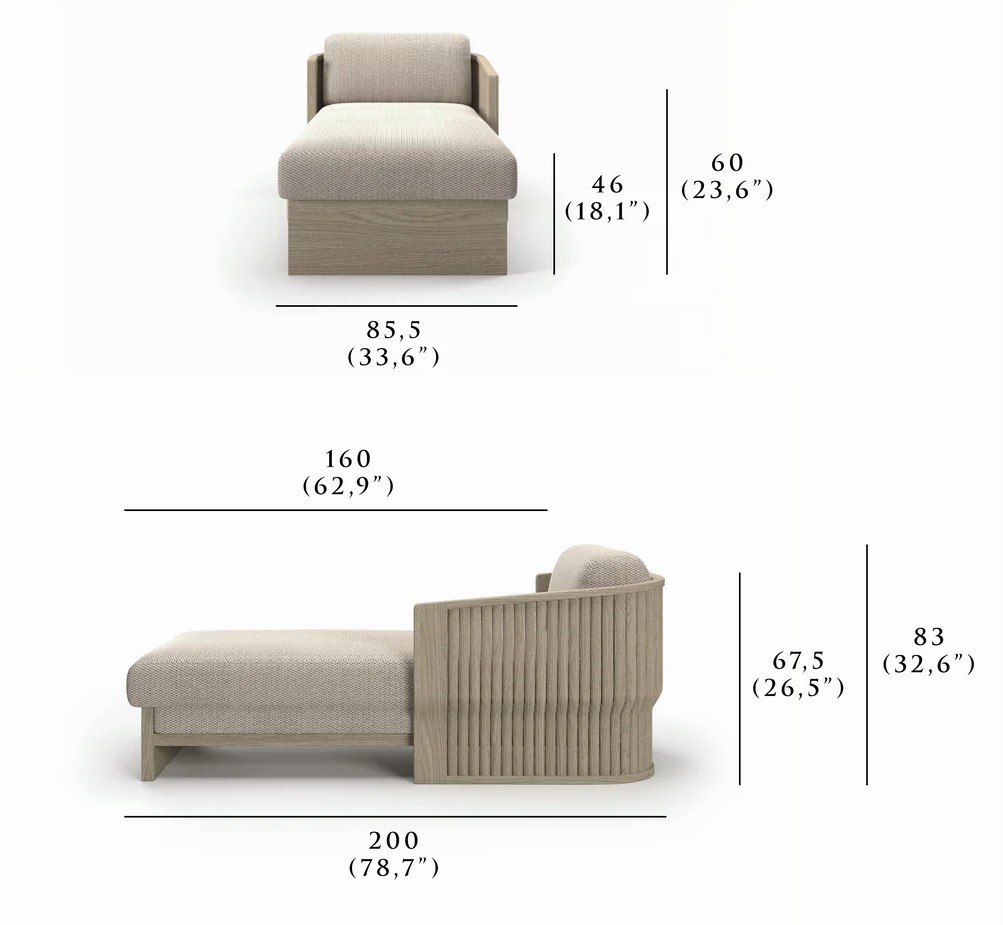 Лаунж-лежак Elythia объединяет мягкие линии и тактильную текстуру натурального тика с изящными деталями из вручную сплетеной акриловой веревки (роуп). Поверхности с имитацией камня создают визуальный контраст и ощущение естественного покоя, а мягкие линии сидений и спинок обеспечивают комфорт и уют в любой зоне отдыха: от веранды до открытой террасы.