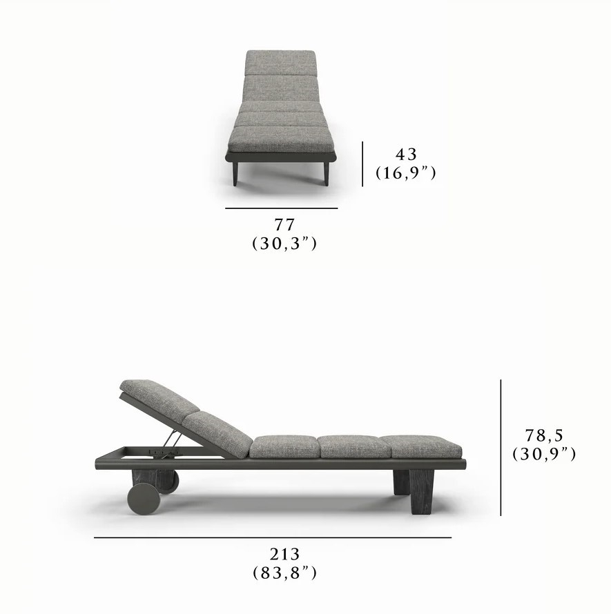 Коллекция Sestri вдохновлена техническим миром судостроения: каждое решение направлено на максимальную функциональность и упрощённую эстетику. Шезлонг-лежак Sestri сочетает продуманную функциональность и сдержанный дизайн: алюминиевый каркас с порошковым покрытием обеспечивает коррозионную стойкость, а теплая фактура ножек из тика уравновешивает техническую ясность алюминиевой рамы, создавая гармоничный образ. Спинка регулируется в несколько положений, что позволяет быстро переключаться между загаром, чтением и отдыхом.