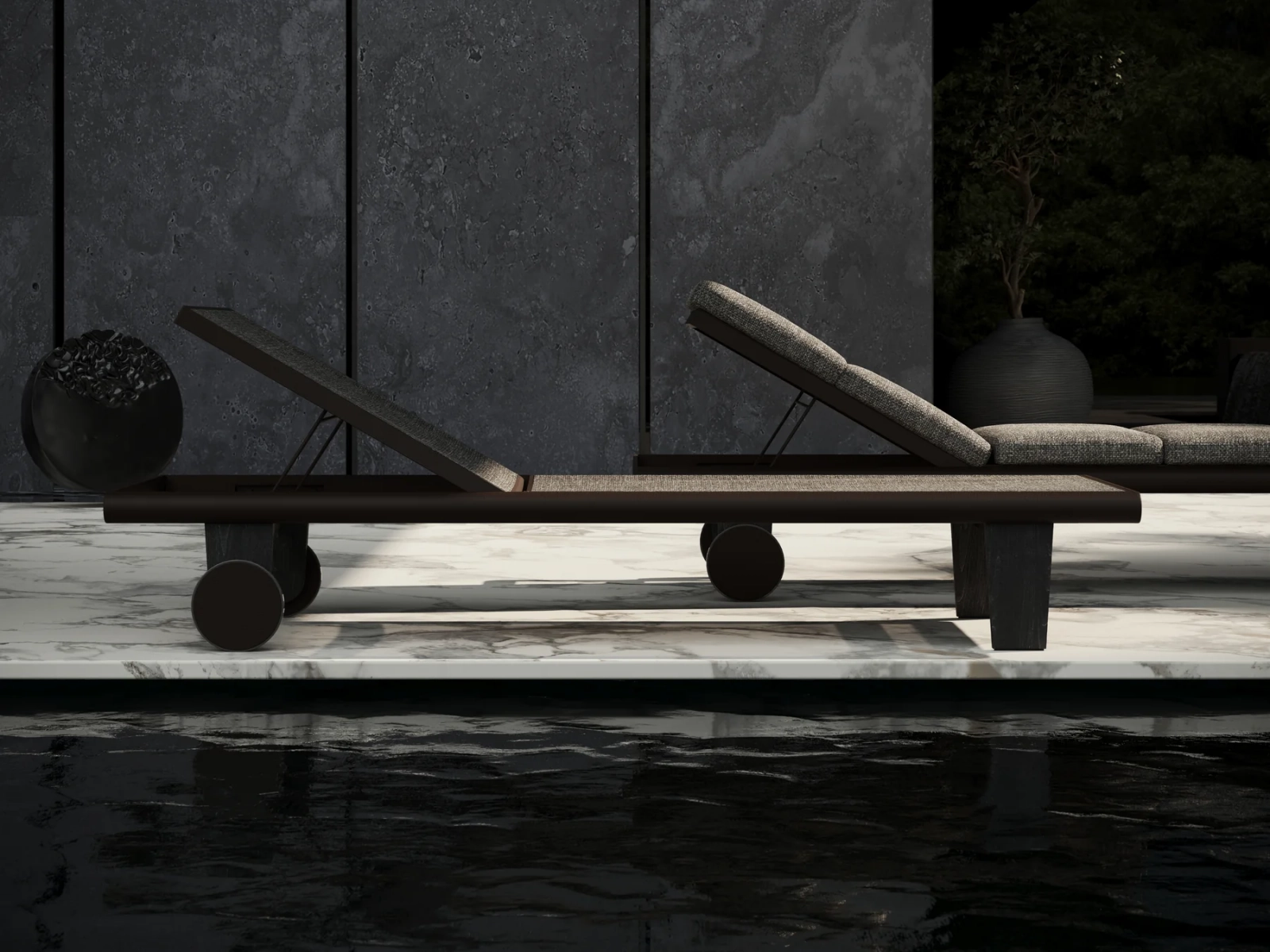 Передние колёса упрощают перемещение по террасе или у бассейна, а в комплект входит комфортный матрас с тканью, устойчивой к УФ и влаге. Идеален для коммерческих зон отдыха и частных террас.
