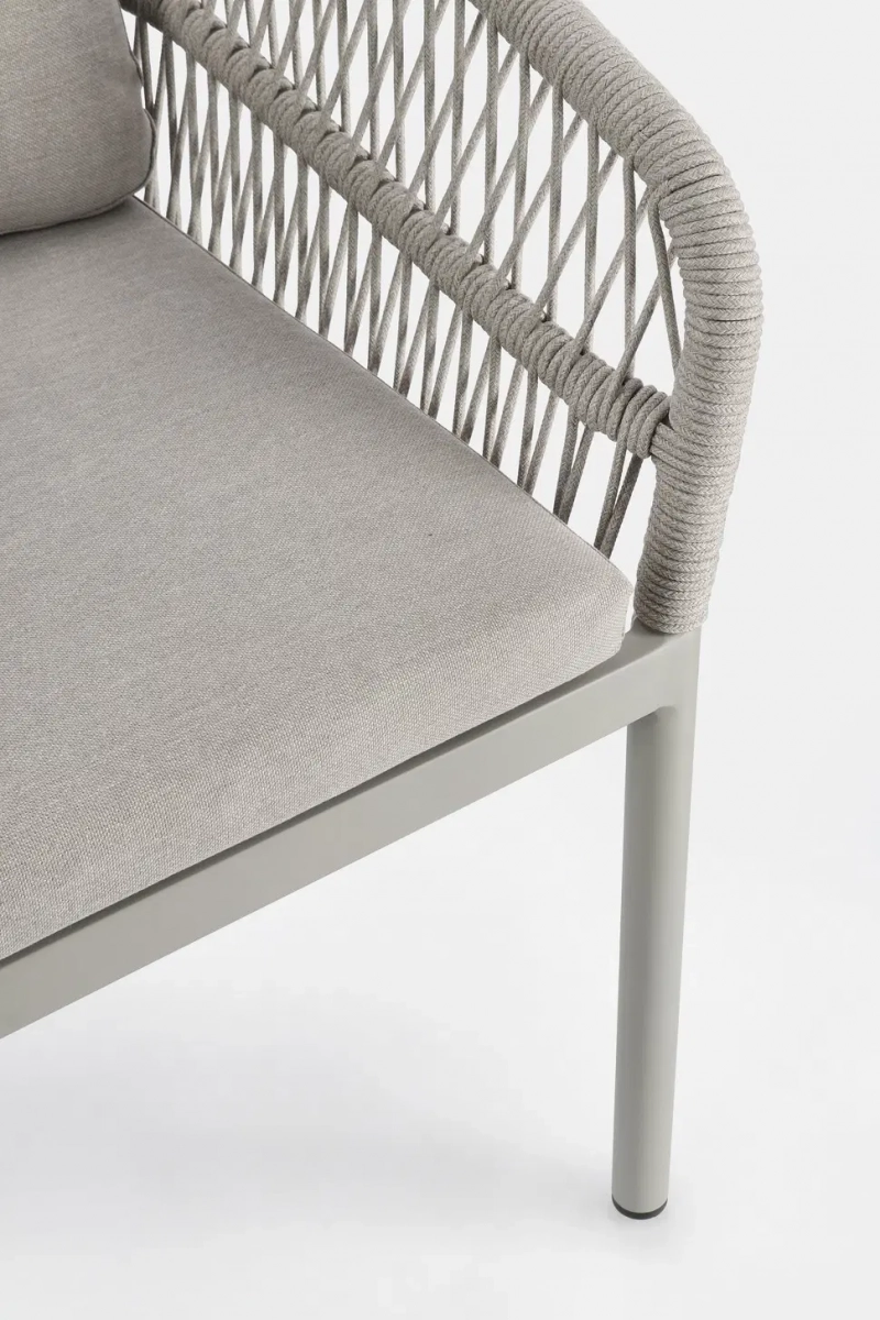 Galdana - современное плетеное кресло, которое идеально сочетает в себе стильный дизайн и функциональность для использования на открытом воздухе. Прочный каркас из алюминия с порошковым покрытием обеспечивает долговечность и устойчивость к коррозии, а плетение из олефиновой веревки выдерживает любые погодные условия, сохраняя безупречный внешний вид годами. Эргономичная форма с объемной спинкой обеспечивает максимальный комфорт, а съемные подушки из 100% водоотталкивающего полипропилена просты в уходе и быстро сохнут.