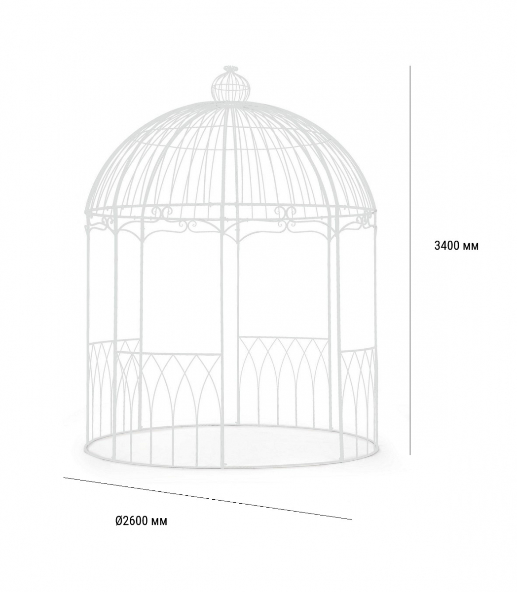 Brumal - изысканная беседка, которая станет эффектным архитектурным акцентом вашего сада или приусадебного участка. Конструкция изготовлена из прочной стали с долговечным порошковым покрытием, обеспечивающим высокую устойчивость к коррозии и любым погодным условиям. Утонченный дизайн с куполообразной крышей, увенчанной декоративным финалом, и изящные готические арки в нижней части создают атмосферу романтической элегантности. Декоративные завитки и ажурный металлический каркас придают модели особый шарм и визуальную легкость.