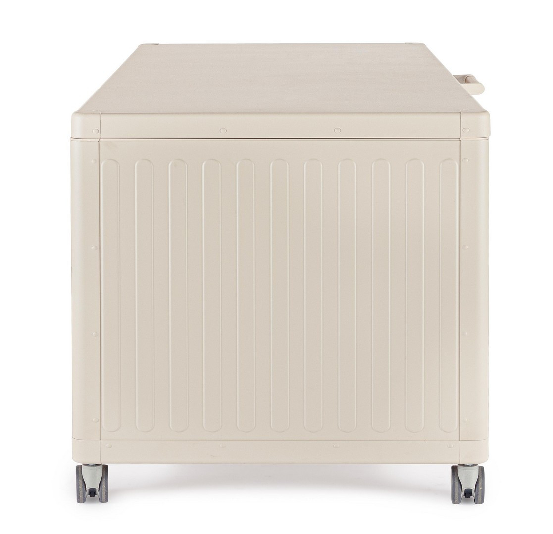 Особое внимание уделено удобству эксплуатации: плавное и безопасное открытие обеспечивается двумя газовыми поршнями, а алюминиевая ручка с высокотехнологичной ПВХ-пленкой создает эффект натуральной древесины с трехмерной текстурой прожилок, добавляя эстетичности дизайну. Практичные пластиковые колеса с надежной системой блокировки позволяют легко перемещать сундук по территории и фиксировать его в нужном положении. Сочетание премиальных материалов, продуманной функциональности и стильного внешнего вида делает эту модель незаменимым элементом для отелей, ресторанов и частных владений, где важны порядок, комфорт и визуальная гармония.