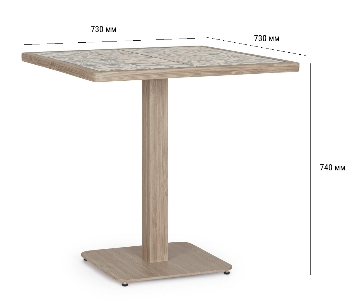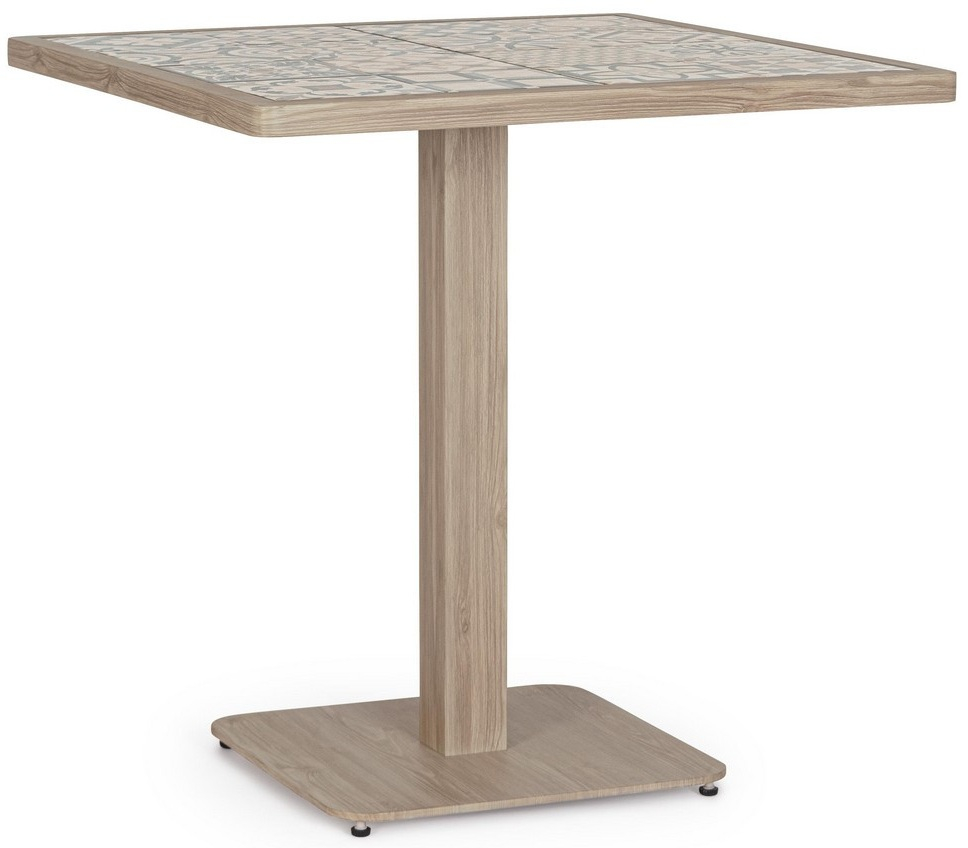 Kalimera - компактный квадратный обеденный стол, созданный для стильного и практичного оформления зон питания. Столешница облицована высококачественной глазурованной фарфоровой плиткой испанского производства, которая отличается исключительной износостойкостью, устойчивостью к царапинам, влаге и перепадам температур. Алюминиевая центральная ножка с порошковым покрытием и основание из стали с электрофорезной обработкой и дополнительным порошковым покрытием гарантируют максимальную прочность конструкции и надежную защиту от коррозии даже при интенсивной эксплуатации на открытом воздухе.