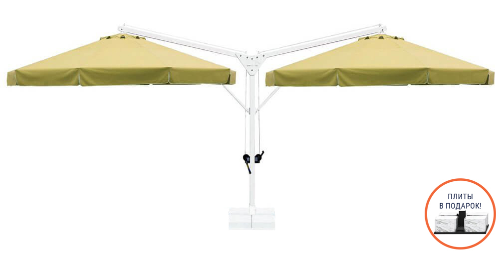 Double Banana - единая база, но больше затенения. Одна опора и два зонта, открывающиеся по бокам, обеспечивают затененную уютную атмосферу на любых открытых площадках. Алюминиевая конструкция, европейская ткань и утяжелительная база гарантируют простое использование.