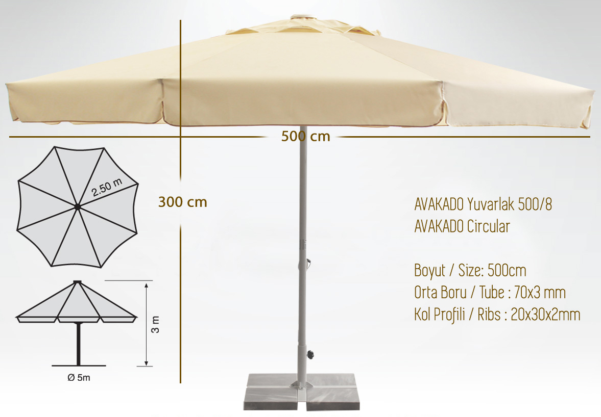 Avocado - профессиональный зонт с центральной опорой из алюминия, что обеспечивает высокую устойчивость модели. Он защитит от ярких солнечных лучей и создаст приятную затененную атмосферу в частных садах, открытых летних площадках кафе, баров и ресторанов, зоны возле бассейна. Зонт Avocado более чем удовлетворит ваши потребностиблагодаря своей доступности и эстетике, прочности и долговечности.