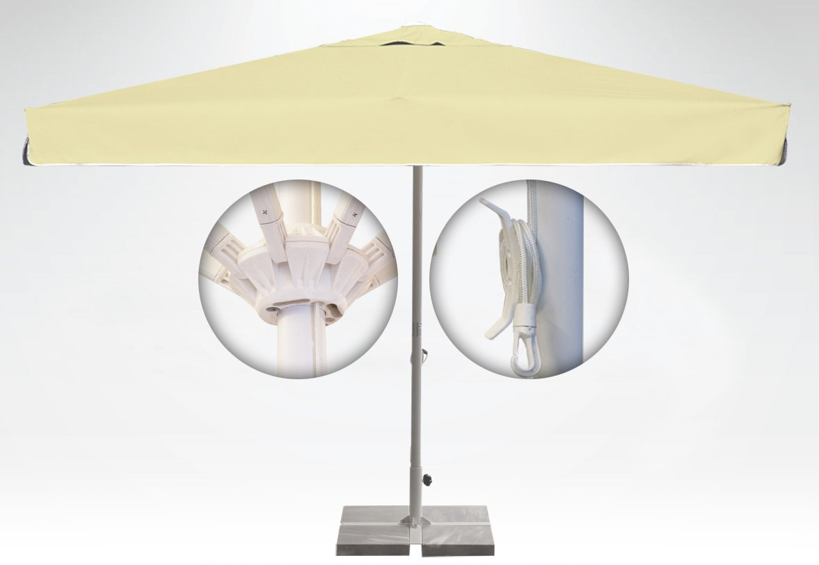 Avocado - профессиональный зонт с центральной опорой из алюминия, что обеспечивает высокую устойчивость модели. Он защитит от ярких солнечных лучей и создаст приятную затененную атмосферу в частных садах, открытых летних площадках кафе, баров и ресторанов, зоны возле бассейна.
