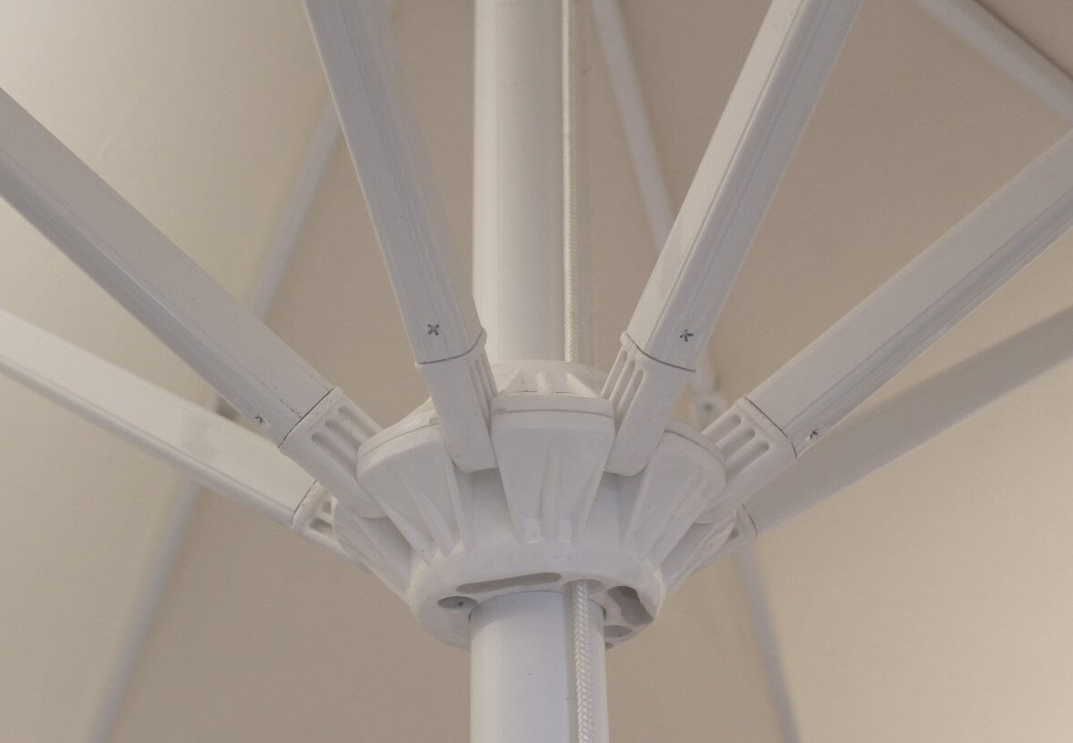 Avocado - профессиональный зонт с центральной опорой из алюминия, что обеспечивает высокую устойчивость модели. Он защитит от ярких солнечных лучей и создаст приятную затененную атмосферу в частных садах, открытых летних площадках кафе, баров и ресторанов, зоны возле бассейна.