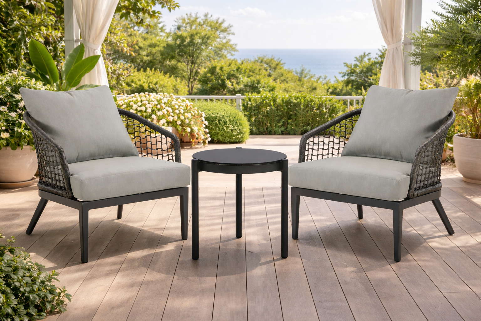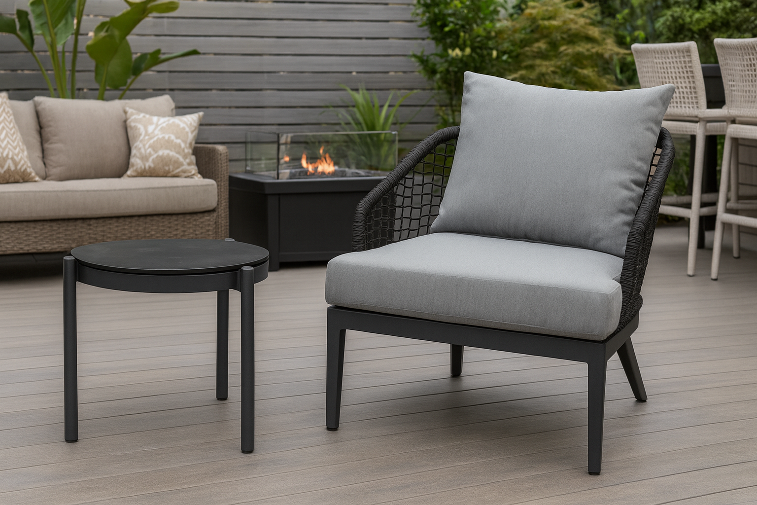 Современный лаунж комплект плетеной мебели Lounge с алюминиевым каркасом станет стильным акцентом в вашем интерьере или на открытой террасе. Мягкие подушки на кресле выполнены из износостойкой ткани обеспечивают максимальный комфорт при отдыхе. Столешница кофейного столика из стекла с керамическим покрытием устойчива к влаге, царапинам и перепадам температур. Современный дизайн делает комплект универсальным элементом для интерьера и уличных пространств. Идеально подойдет для отдыха на террасе, балконе, в саду или гостиной. Отлично сочетается с кофейным столиком из той же коллекции.
