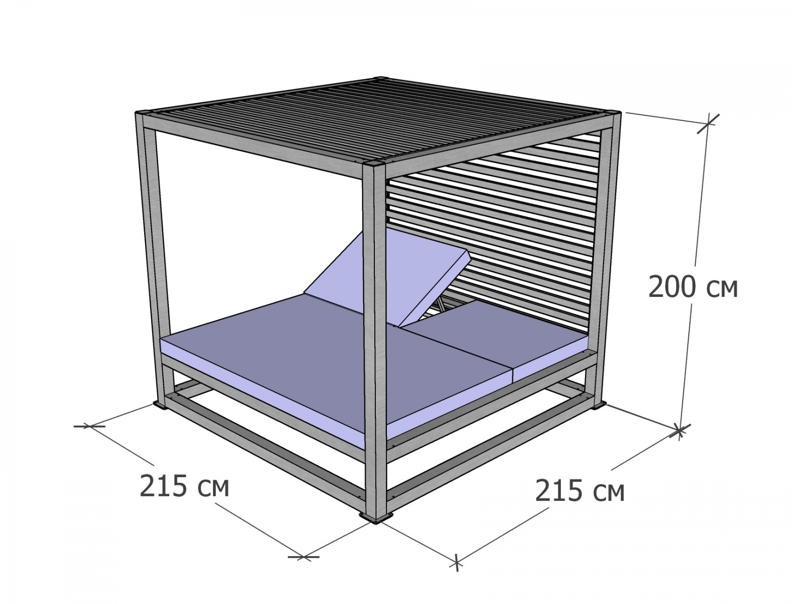 Цена на сайте указана за шатер с лежаками, навесом, задней стенкой и нижним обкладом из лиственницы. Для уточнения всех возможных вариантов материала и цвета данного изделия обращайтесь к нашим менеджерам.