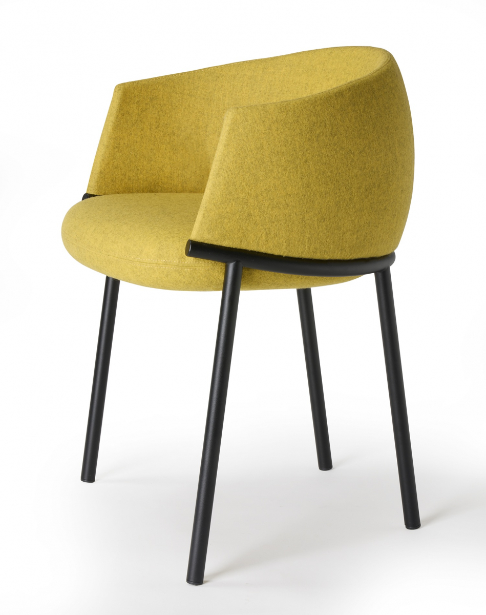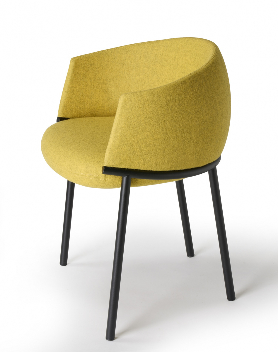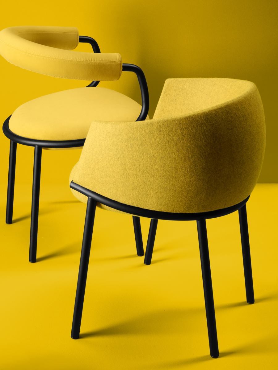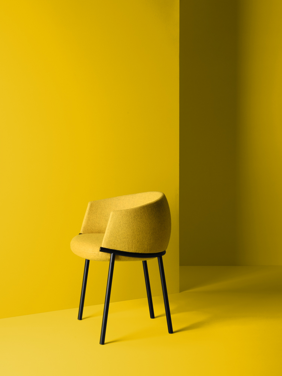 Koala переосмысляет классическое кресло-ванну через язык графичного минимализма. Его конструкция строится вокруг выразительного трубчатого кольца: этот элемент не только формирует посадочное место и поддерживает спинку, но и задает динамичный поток линий, в которых легкость металла уравновешивает щедрую объемность мягкой части. Благодаря продуманной эргономике и мягкой обивке, кресло дарит фирменное чувство защищенности, не теряя визуальной воздушности.