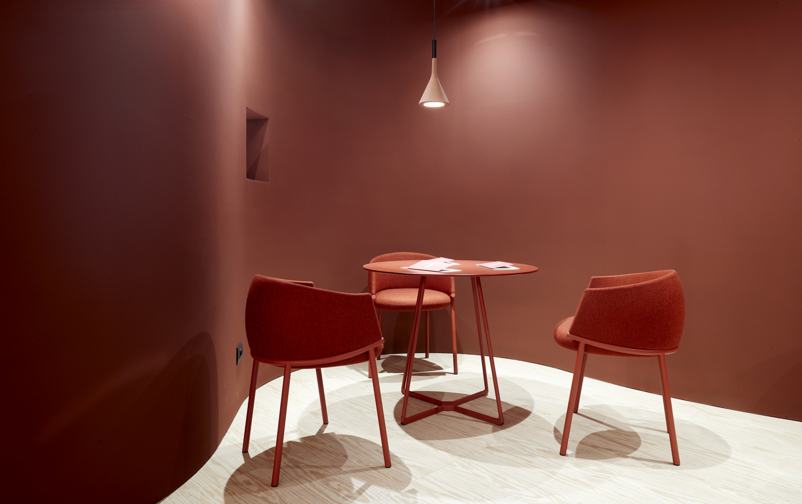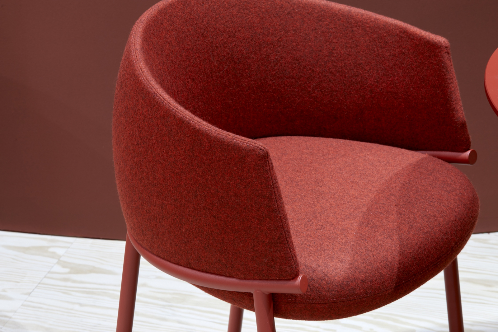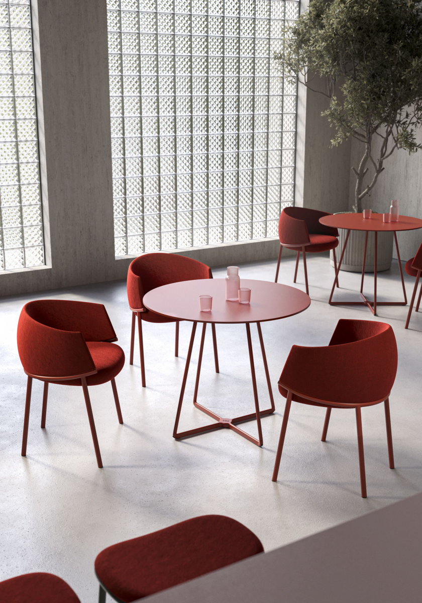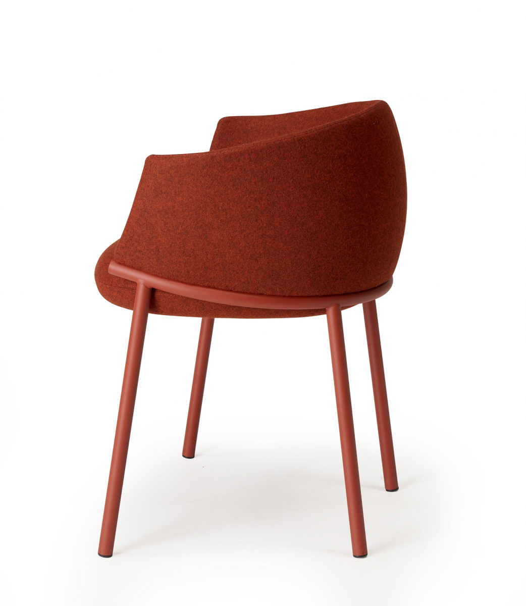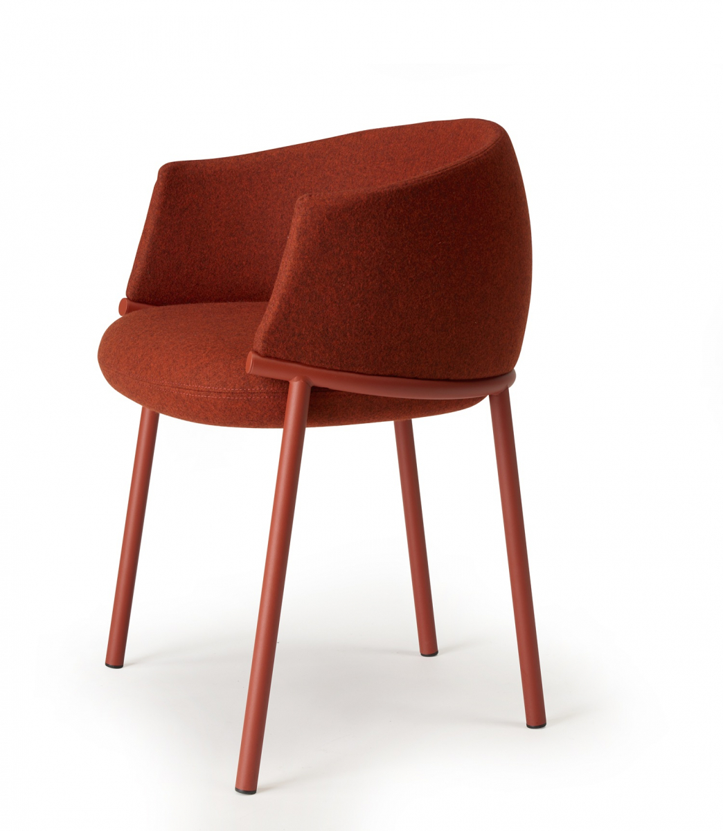 Koala переосмысляет классическое кресло-ванну через язык графичного минимализма. Его конструкция строится вокруг выразительного трубчатого кольца: этот элемент не только формирует посадочное место и поддерживает спинку, но и задает динамичный поток линий, в которых легкость металла уравновешивает щедрую объемность мягкой части. Благодаря продуманной эргономике и мягкой обивке, кресло дарит фирменное чувство защищенности, не теряя визуальной воздушности.