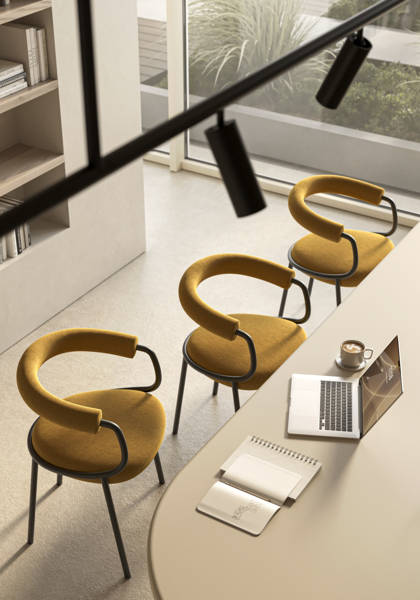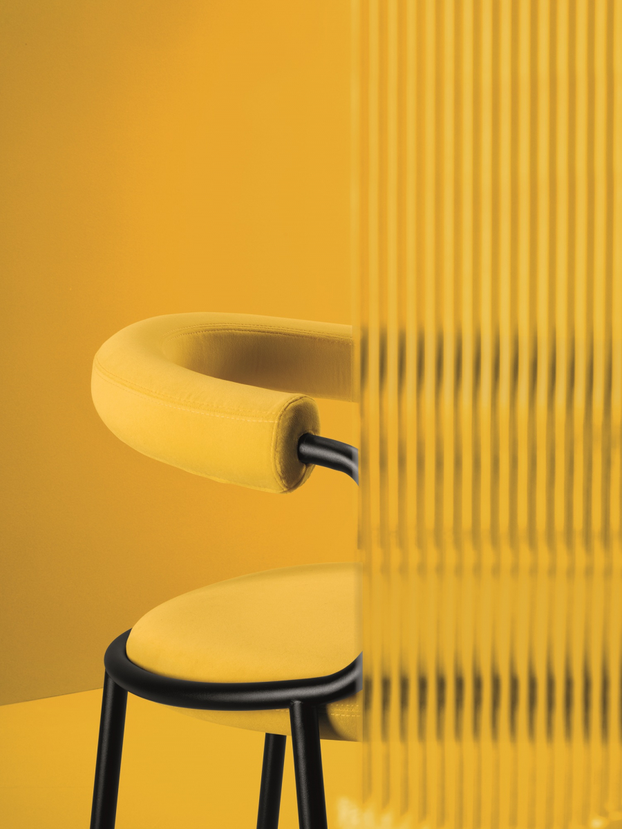 Открытая версия кресла Koala Open подчеркивает графическую выразительность трубчатого металлического каркаса, который обволакивает форму сиденья, словно объятие - отсюда и название Koala, вдохновленное австралийским сумчатым животным, известным своей тесной связью со своими детенышами. Цилиндрическая верхняя обивка обеспечивает комфортную поддержку спины, позволяя при этом спинке "дышать", создавая гармоничный баланс между объемом и пустотой. Яркие цвета обивки позволяют легко вписать кресло в различные интерьеры, не нарушая его современный стиль.