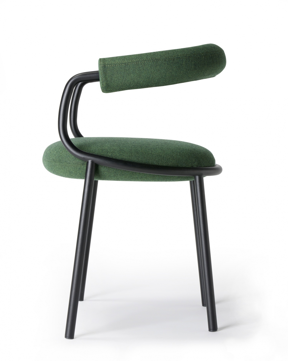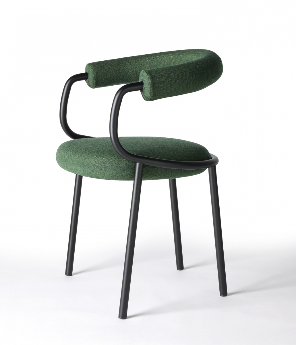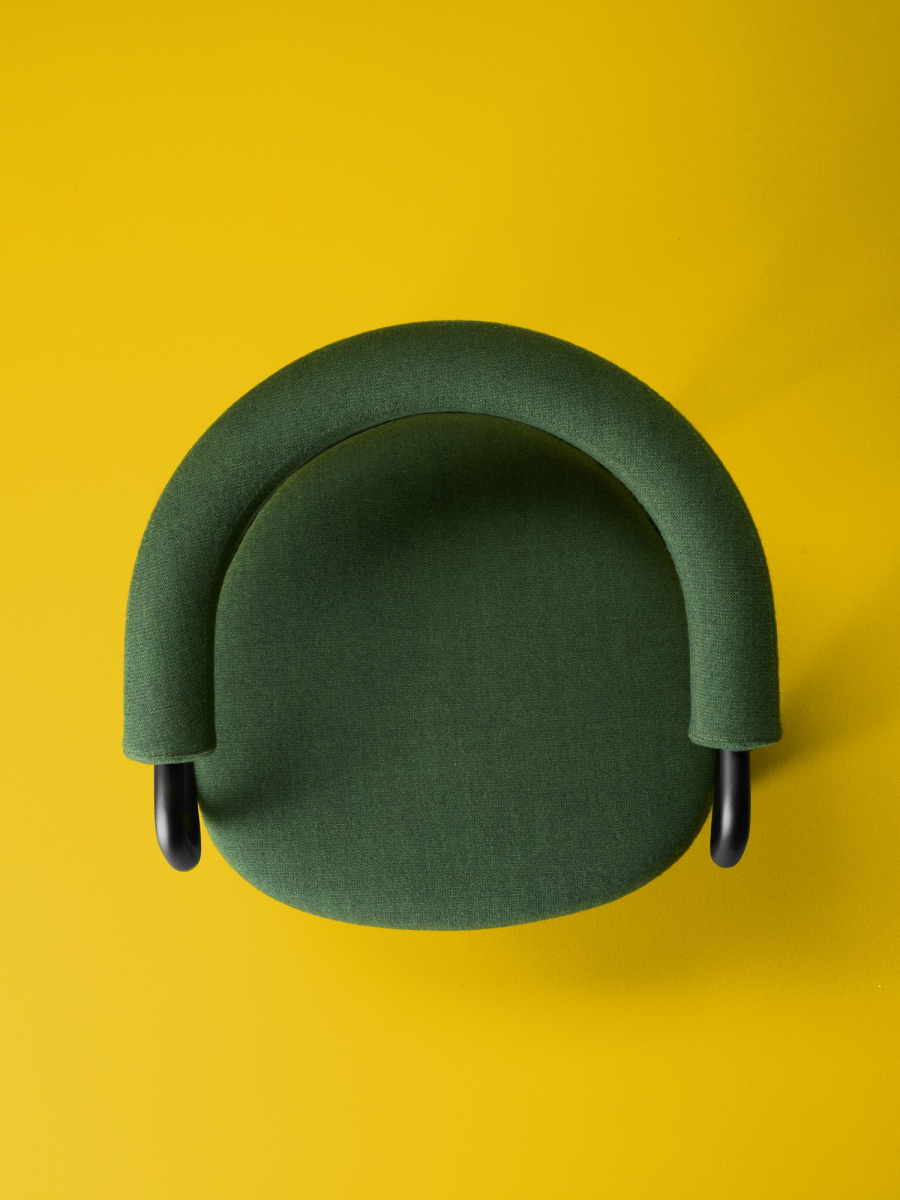 Koala переосмысляет классическое кресло-ванну через язык графичного минимализма. Его конструкция строится вокруг выразительного трубчатого кольца: этот элемент не только формирует посадочное место и поддерживает спинку, но и задает динамичный поток линий, в которых легкость металла уравновешивает щедрую объемность мягкой части. Благодаря продуманной эргономике и мягкой обивке, кресло дарит фирменное чувство защищенности, не теряя визуальной воздушности.
