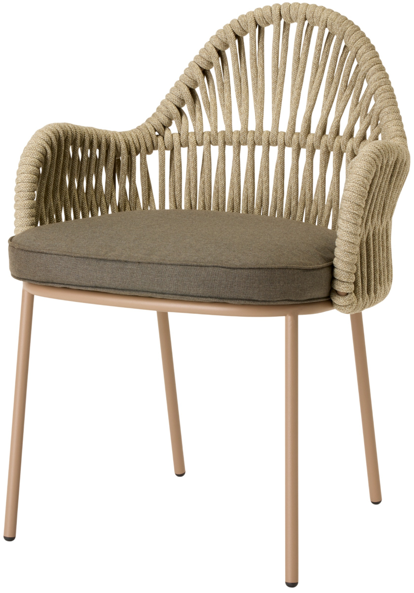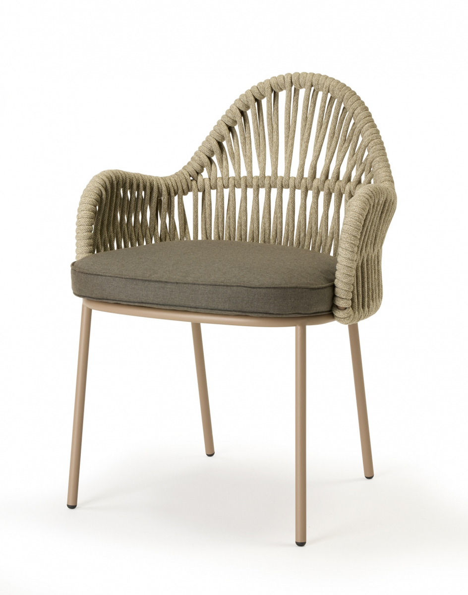Malvasia Riviera переосмысляет философию уличного отдыха, смещая акцент с индустриальной структуры на природную теплоту. В отличие от оригинальной модели Malvasia с её строгим металлическим плетением, новая версия представляет каркас с изящной веревочной спинкой - она наполняет силуэт мягкостью и естественным ритмом. Щедрые подлокотники и глубокое посадочное место формируют мгновенное ощущение комфорта, а сама конструкция словно сплетена из воздуха: продуманное переплетение веревок в тон создает иллюзию свежего бриза, даря долгожданную прохладу в летний зной.