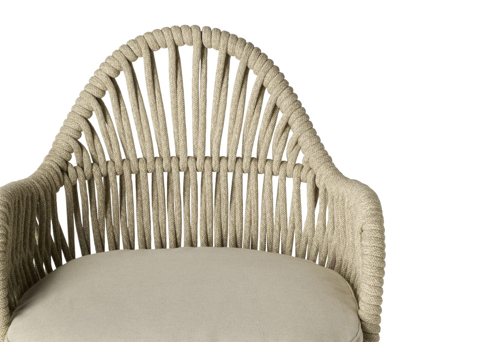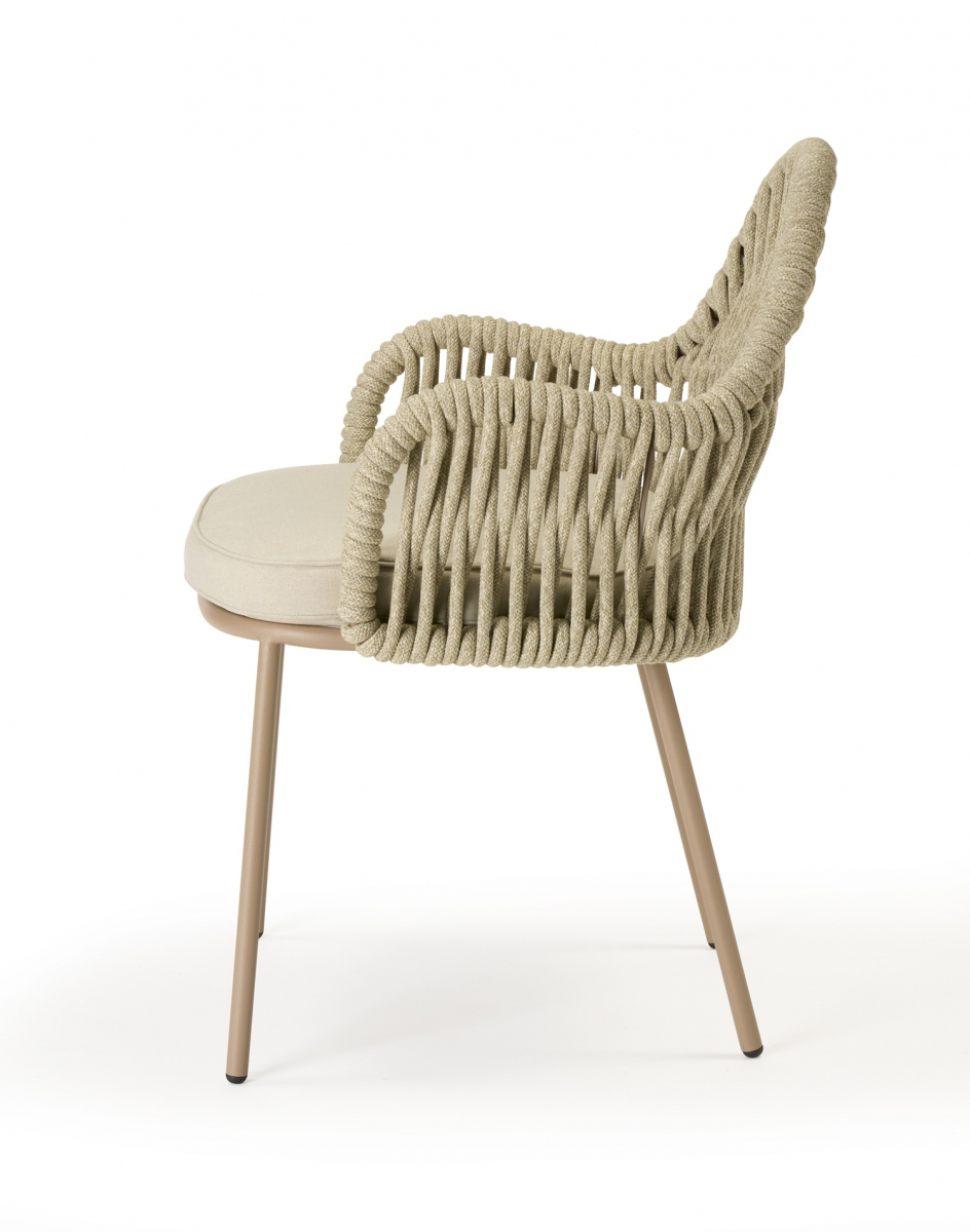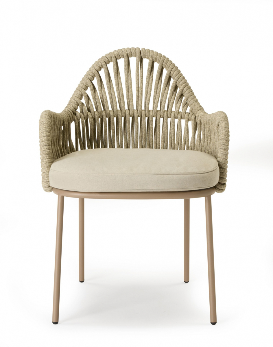 Malvasia Riviera переосмысляет философию уличного отдыха, смещая акцент с индустриальной структуры на природную теплоту. В отличие от оригинальной модели Malvasia с её строгим металлическим плетением, новая версия представляет каркас с изящной веревочной спинкой - она наполняет силуэт мягкостью и естественным ритмом. Щедрые подлокотники и глубокое посадочное место формируют мгновенное ощущение комфорта, а сама конструкция словно сплетена из воздуха: продуманное переплетение веревок в тон создает иллюзию свежего бриза, даря долгожданную прохладу в летний зной.