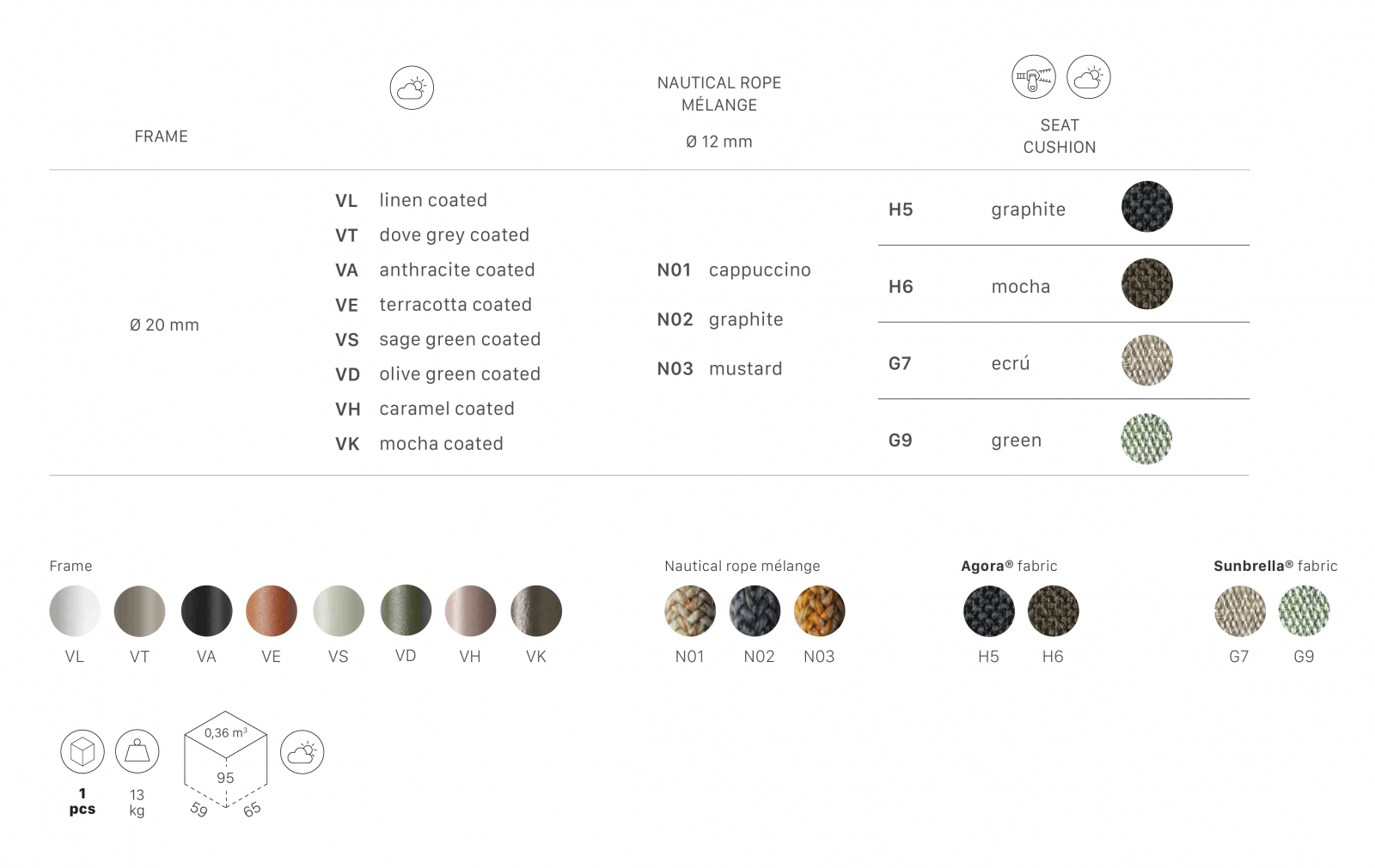 Цена указана за модель с каркасом в карамельном цвете (VH), плетением в цвете капучино (N01) и обивкой сиденья из ткани Sunbrella цвета слоновая кость (G7). Для уточнения всех возможных вариантов материала и цвета данного изделия обращайтесь к нашим менеджерам.