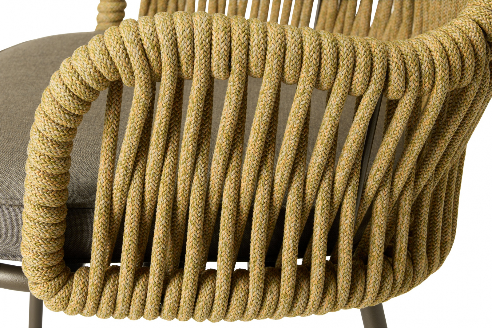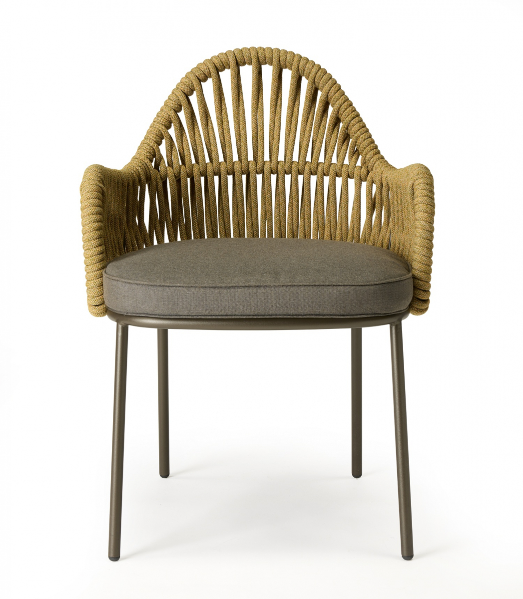 Malvasia Riviera переосмысляет философию уличного отдыха, смещая акцент с индустриальной структуры на природную теплоту. В отличие от оригинальной модели Malvasia с её строгим металлическим плетением, новая версия представляет каркас с изящной веревочной спинкой - она наполняет силуэт мягкостью и естественным ритмом. Щедрые подлокотники и глубокое посадочное место формируют мгновенное ощущение комфорта, а сама конструкция словно сплетена из воздуха: продуманное переплетение веревок в тон создает иллюзию свежего бриза, даря долгожданную прохладу в летний зной.
