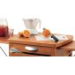 Кухонный островок изготовлен из натурального массива бука, он удобен и экологичен. Резиновые колёсики делают его очень мобильным, а специальные стопоры помогут надёжно зафиксировать его на одном месте.