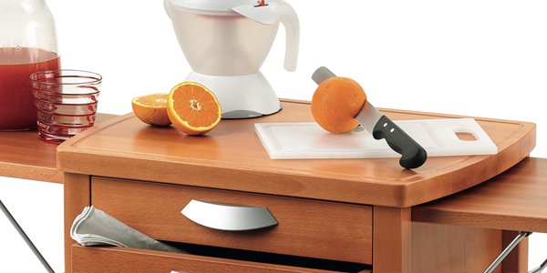 Кухонный островок на колёсиках Santiago от итальянской фабрики Arredamenti Italia (ARiT) станет незаменимым помощником гостеприимной хозяйки. На большую раздвижную столешницу можно поставить большое количество посуды и разнообразных блюд. Выдвижные ящички позволят хранить столовые приборы и мелкие вещи. Две большие корзины вместят все необходимые продукты. Помимо этого изделие снабжено полкой для бутылок, что делает его невероятно функциональным.