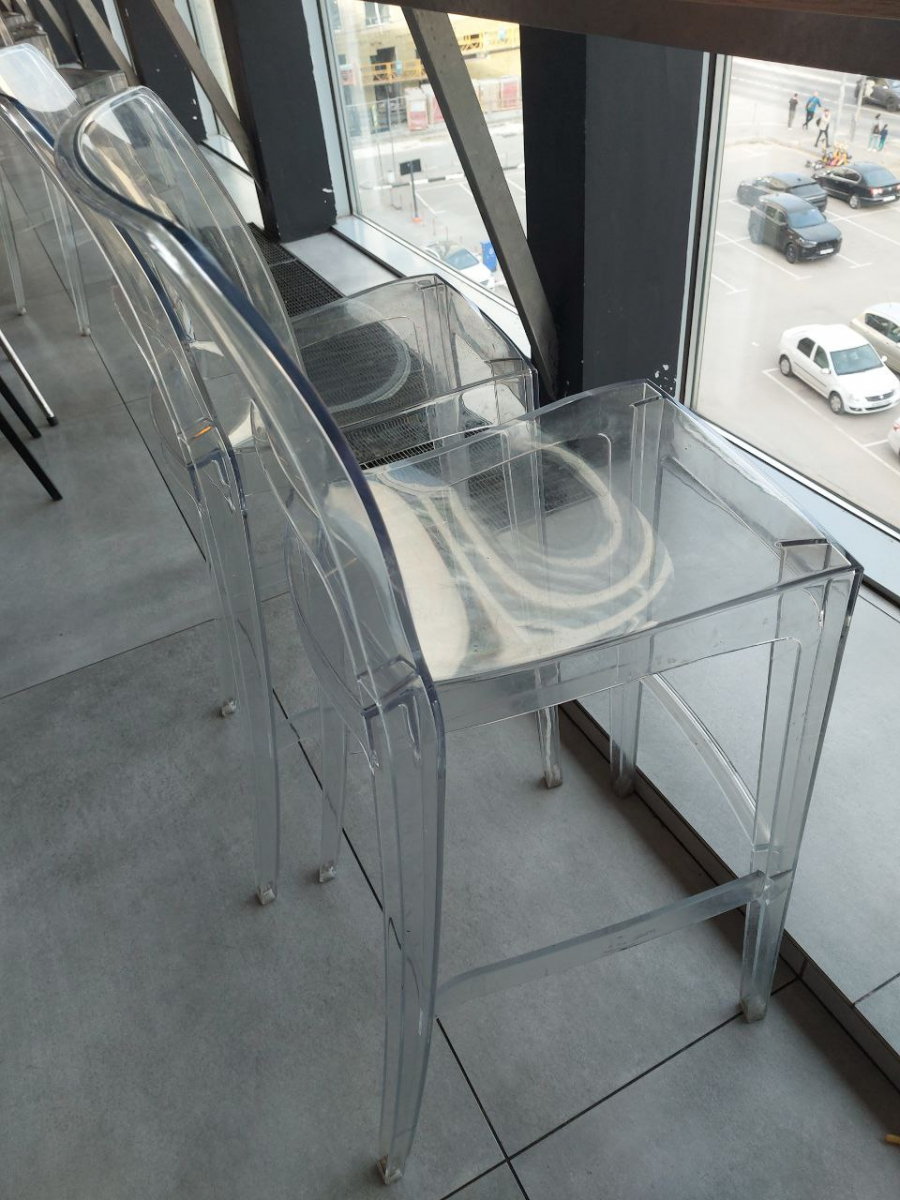 Информация по уходу: прозрачные стулья можно протирать тряпкой из микрофибры, допускается применение нейтрального мыльного раствора. Запрещается использовать спиртосодержащие или ацетоносодержащие (а также им подобные) средства.