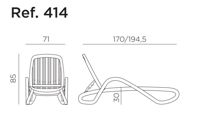 Шезлонг-лежак пластиковый Tropico Nardi, Италия, 1700-1945х690х910 мм