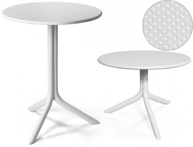 Инновационный стол Step – это модель, которая может превращаться из обеденного стола в журнальный путем смены опоры. Круглая столешница оснащена небольшими декоративными и функциональными отверстиями, которые обеспечивают очень хороший дренаж. Большая цветовая палитра отделок состоит из ярких и теплых оттенков, что позволяет подобрать максимально нужный вариант в соответствии с потребностями.