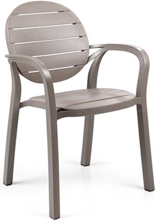Изысканное кресло Palma обладает современным дизайном. Его ярким акцентом является сиденье и спинка, которые изготовлены из широких реек из полипропилена с древесной текстурой. Ощущение инновационного характера усиливают тонкие лаконичные ножки, которые вытянуты параллельно корпусу. Palma – это стильное решение для обстановки как летнего кафе, так и для частного сада. Очень низкий коэффициент теплопроводности материала позволяет продукции долго оставаться на солнце без поглощения тепла.