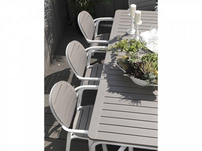 Элегантный раздвижной стол Alloro 210 Extensible со столешницей DurelTop предназначен для использования на улице. Он является дополнением к обеденному ряду Nardi и позволяет регулировать длину стола по мере необходимости в зависимости от того, сколько человек нужно разместить. Это отличная альтернатива обеденному столу для использования на свежем воздухе из тикового дерева или бруса, поскольку он придает тот же внешний вид благодаря современному и привлекательному дизайну.