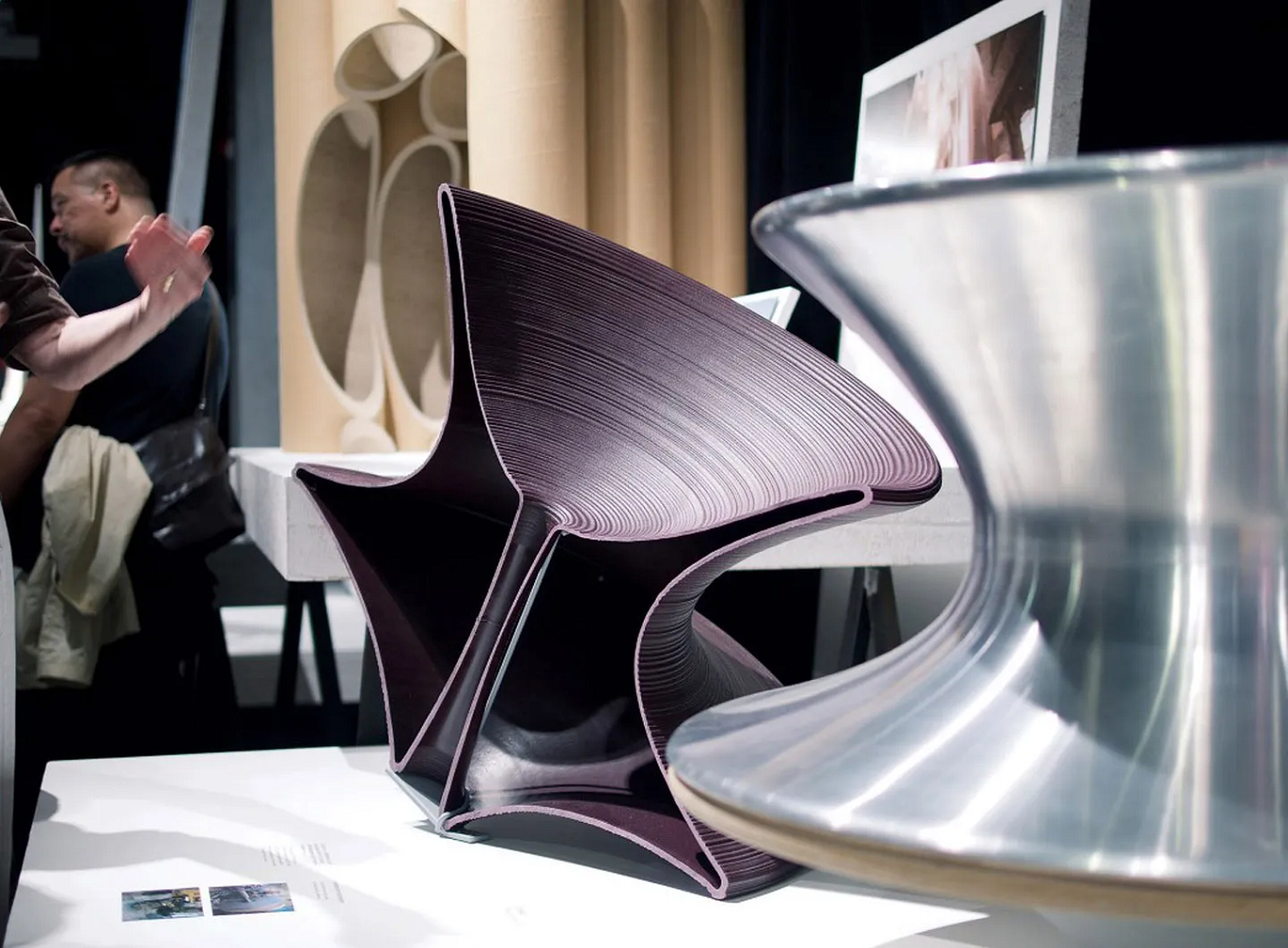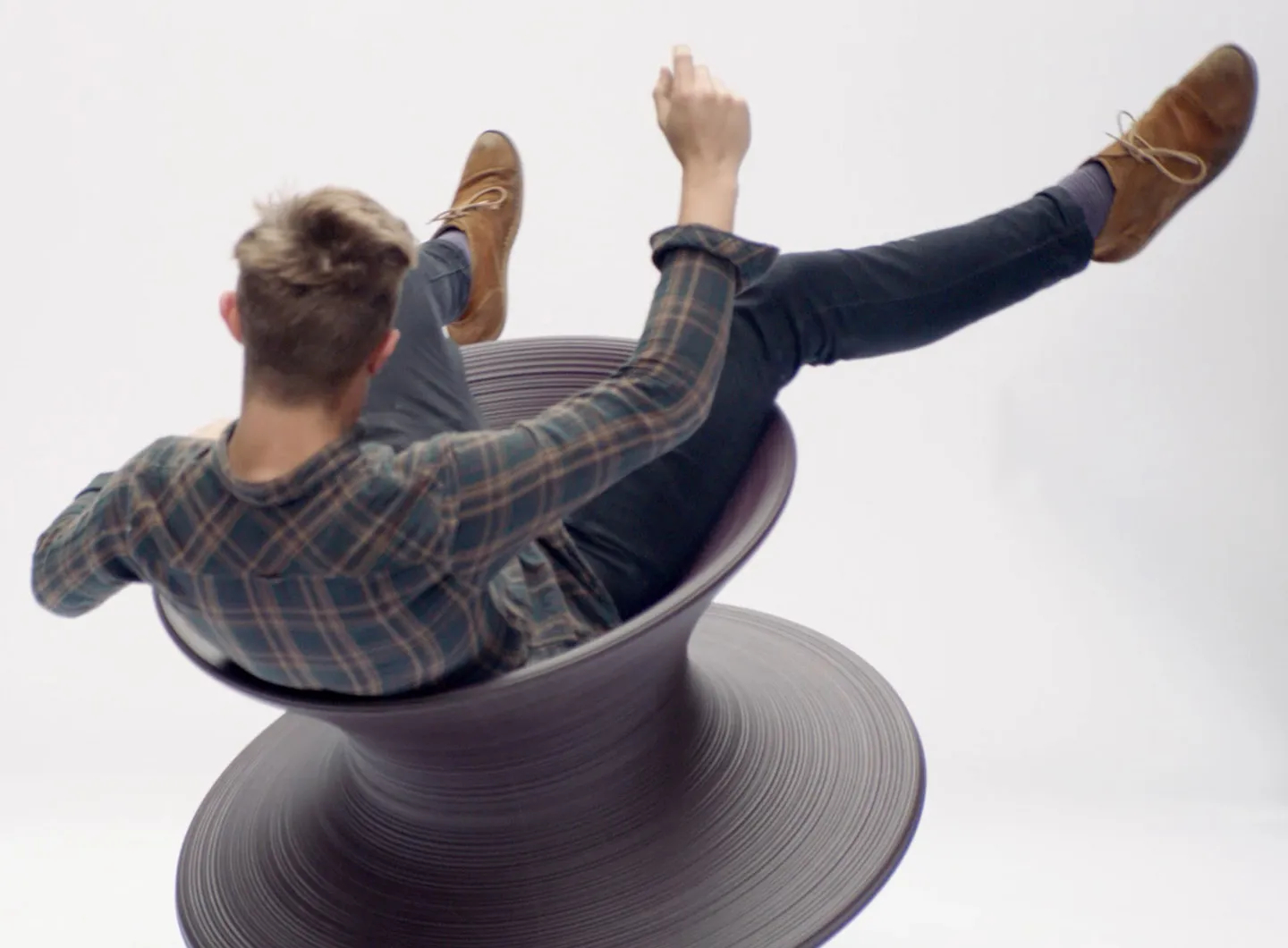 Томас Хизервик представил поразительный поворот в традиционном дизайне мебели: функциональное кресло, состоящее из одного профиля, вращающегося на 360 градусов. Spun демонстрирует склонность Хизервика к сложным правилам и насмешливо играет с идеей, что статичная скульптура становится игривым произведением дизайна. В вертикальном положении Spun представляет собой скульптурный сосуд, и только когда его перекладывают на бок, игривые возможности его формы раскрываются. Вращение позволяет креслу совершать круговые покачивающие движения, включая возможность совершать полный круг.