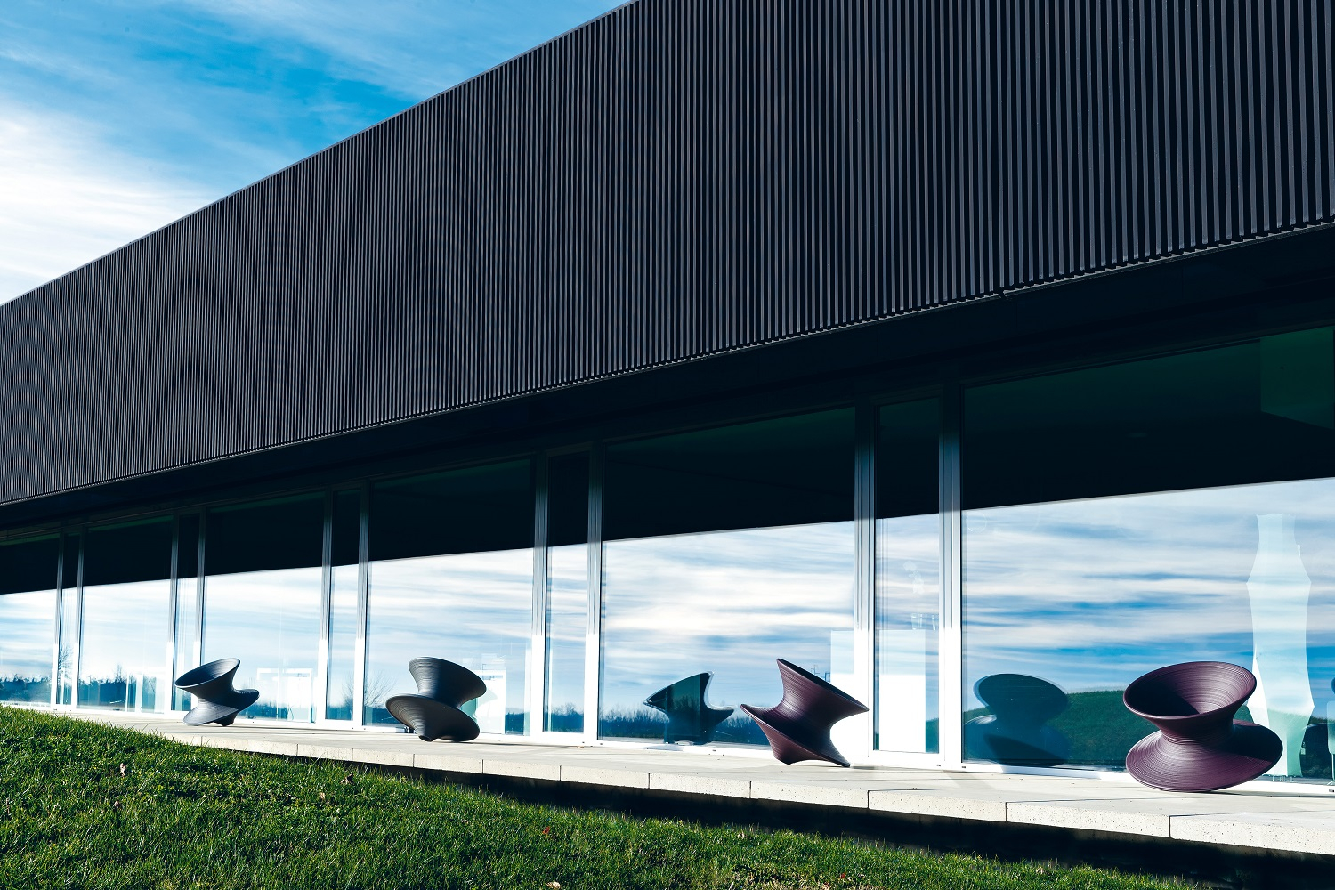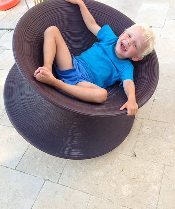 Это не просто новое сиденье, а новая концепция сиденья. Гармоничная, динамичная и идеально симметричная форма кресла Spun напоминает катушку хлопка, волчок, вращающийся вокруг своей оси, или вазу, брошенную на гончарный круг. Захватывающая современная скульптура, когда она неподвижна, Spun в движении становится удобным и забавным сиденьем, местом, на котором мы можем испытать новые ощущения, заново открыть для себя удовольствие от раскачивания, поворачиваться на 360° и играть с окружающим миром. Чтобы получить желаемый конечный результат, потребовался длительный процесс прототипирования и тестирования. Это нетрадиционное кресло, созданное на основе творческого таланта Томаса Хизервика и исследований Magis, уже завоевало одну из высших наград в мире дизайна - премию ADI Compasso d'Oro Award 2014.
