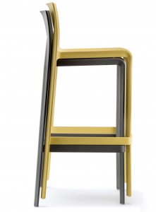 Коллекция Volt элегантна и гостеприимна. Она характеризуется тонкими линиями, эргономичной формой и приятными пропорциями. Барный стул, изготовленный из стеклопластика (полипропилен, наполненный стекловолокном), отлит под давлением методом газовой формовки. Подставка для ног, расположенная как лента на трёх сторонах опор, увеличивает устойчивость стула. Данная модель не выгорает и не нагревается на солнце, а значит идеально подходит для открытых площадок.