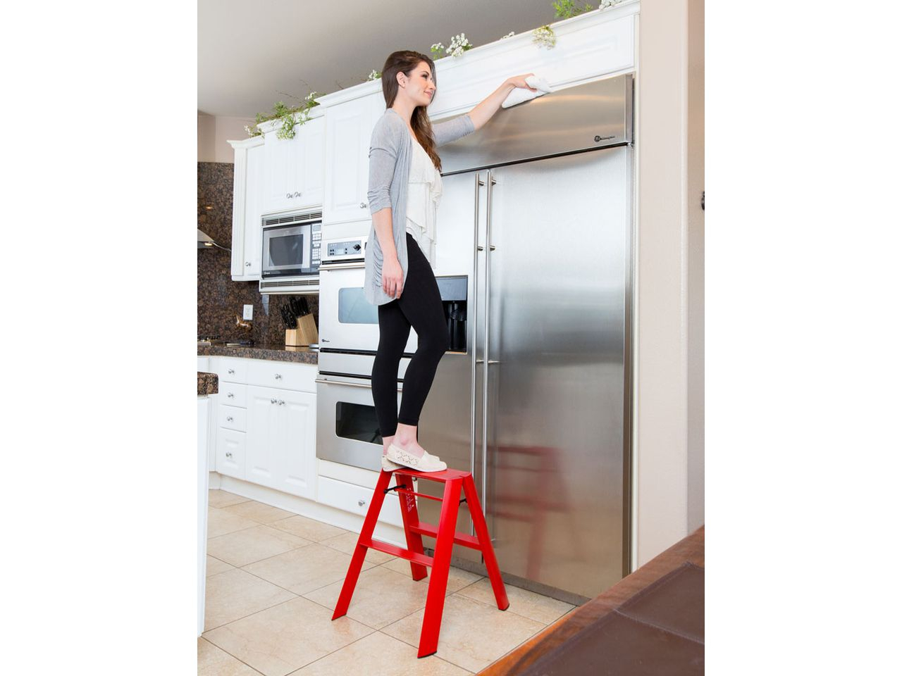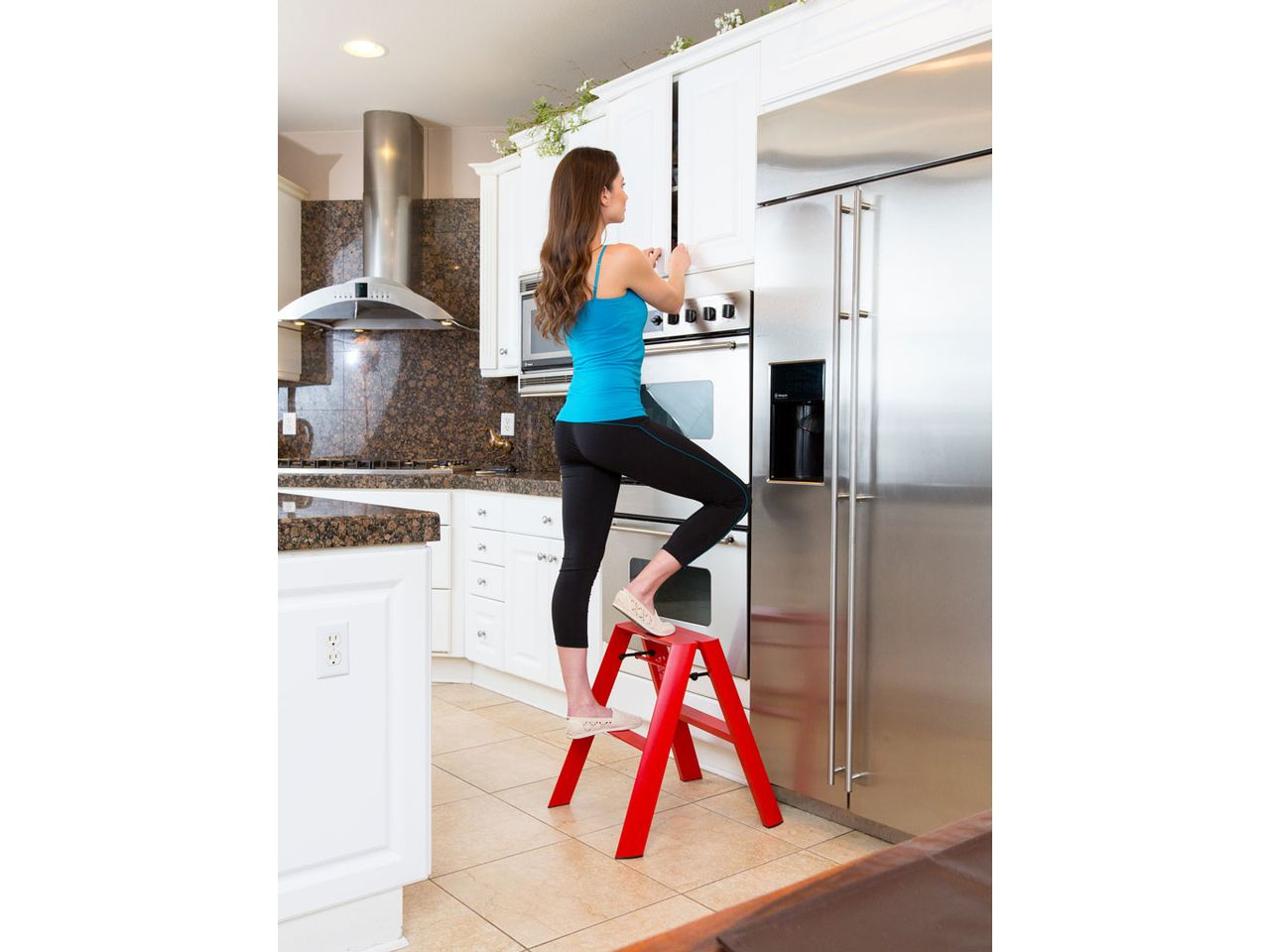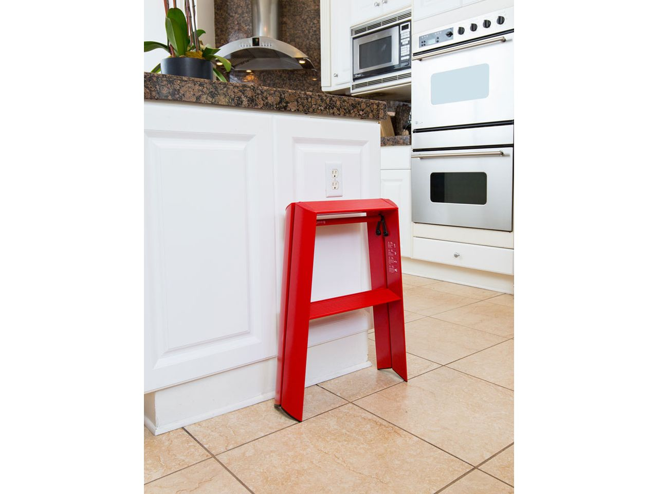 Особенностями этих дизайнерских стремянок являются: безопасная защелка, нескользящие ножки, рифленые протекторы на ступеньках.