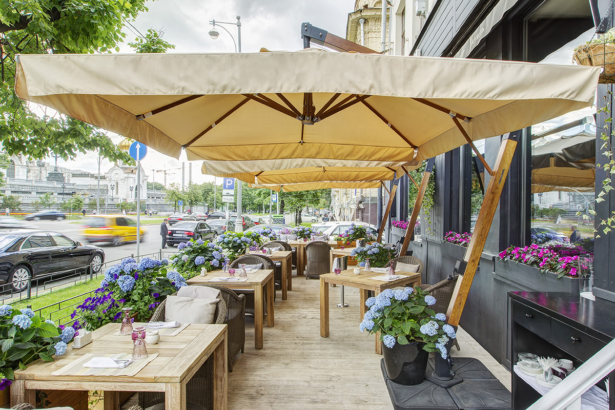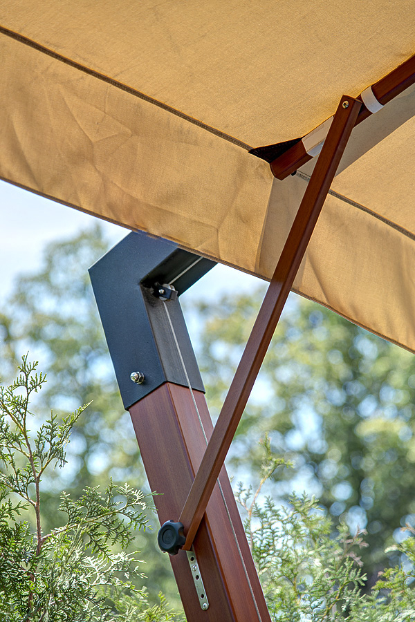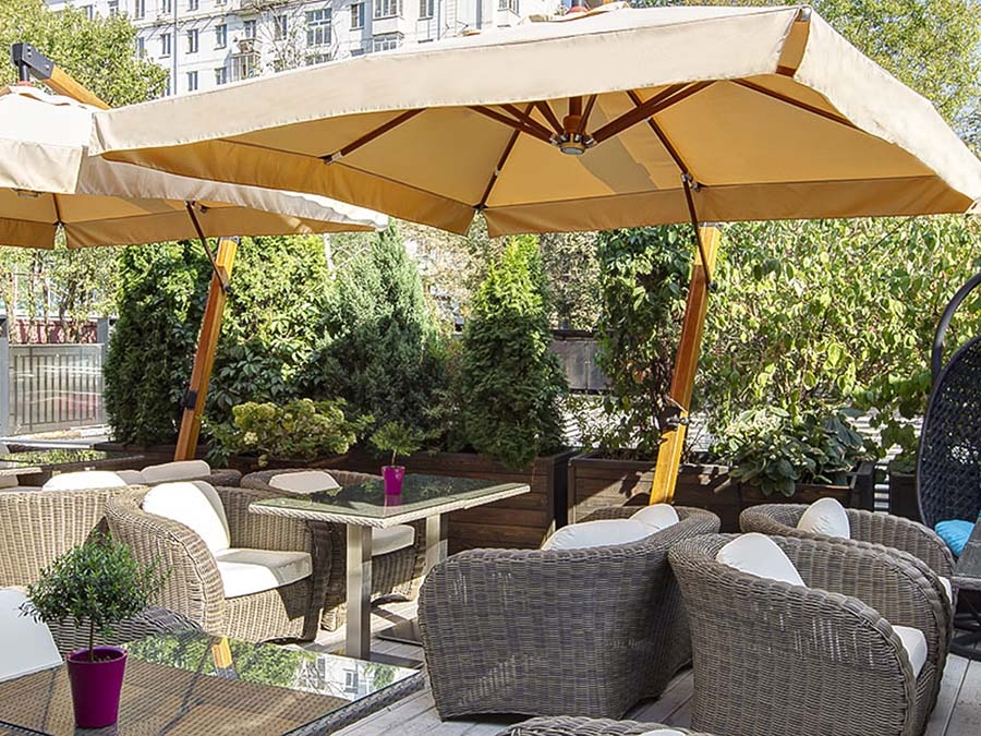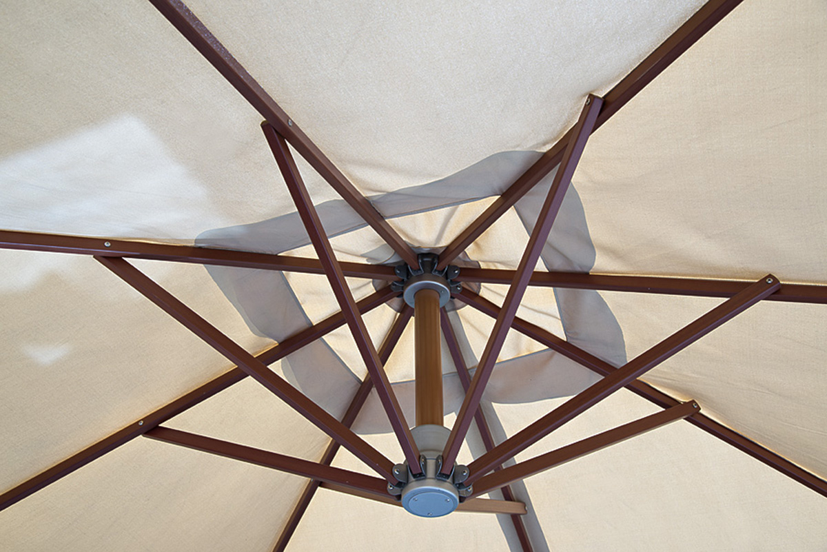Зонт "Ливорно" с равными сторонами 3x3м на боковой опоре - стильный и незаменимый элемент экстерьера загородного участка или летнего ресторана. Тент изготовлен из качественной водоотталкивающей ткани Spunpoly плотностью 310 г/м2, устойчивой к выгоранию на солнце. Металлические соединители из нержавеющей стали идут в комплекте с держателем. Зонт уже оснащен защитой от порывов ветра, лебёдочным механизмом складывания купола зонта и поворотным механизмом позволяющим поворачивать всю конструкцию на 360° вокруг своей оси.