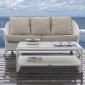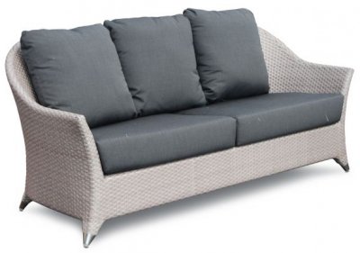 Плетеный трехместный диван из искусственного ротанга цвета Super White и подушками из ткани Sunbrella. Классическая модель, закруглённые формы, плавные линии и плотное плетение - составляющие универсального стиля коллекции Malta, где мебель легко вписывается в любое пространство, создавая ощущение изысканной эстетики.