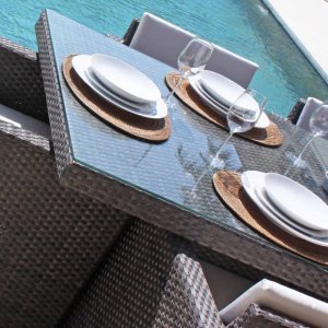 Плетеный квадратный обеденный стол Pacific из искусственного ротанга цвета Mocca и столешницей из закаленного стекла. Универсальная коллекция. Элегантная и строгая, она способна идеально вписаться в любую среду и адаптироваться к любому стилю.