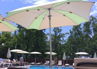 Зонт Mondrian - оригинальная модель, которая придает эстетичность пляжам, бассейнам, открытым площадкам. Благодаря своим размерам увеличивает размер затененного пространства, по сравнению с другими моделями.