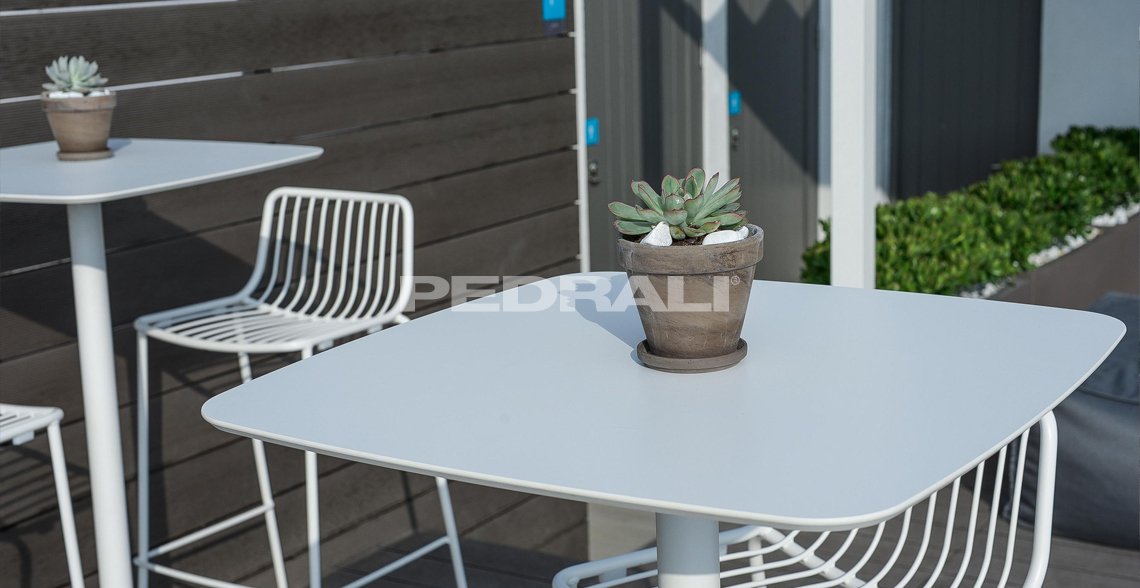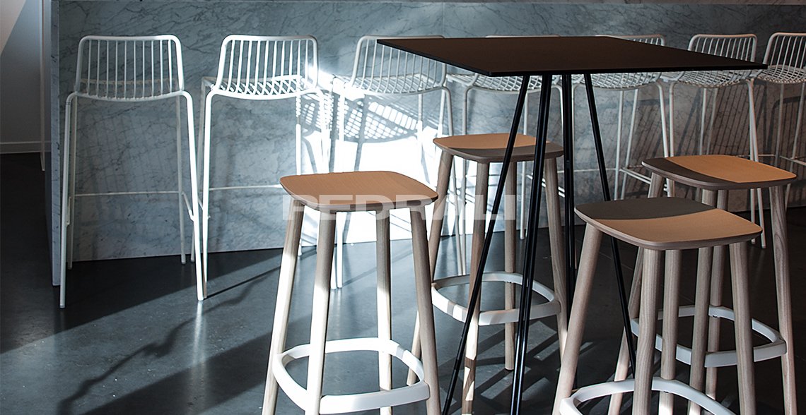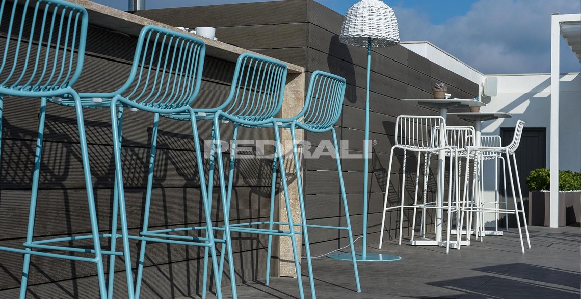 Коллекция Nolita – это мебель, разработанная специально для использования на открытом воздухе, придающая элегантность и свежесть этим пространствам. Она напоминает первые садовые стулья, с производства которых в 1963 году Mario Pedrali начал свое мебельное дело. Штабелируемый барный стул со стальным каркасом и подножкой, окрашенными для использования на открытом пространстве.