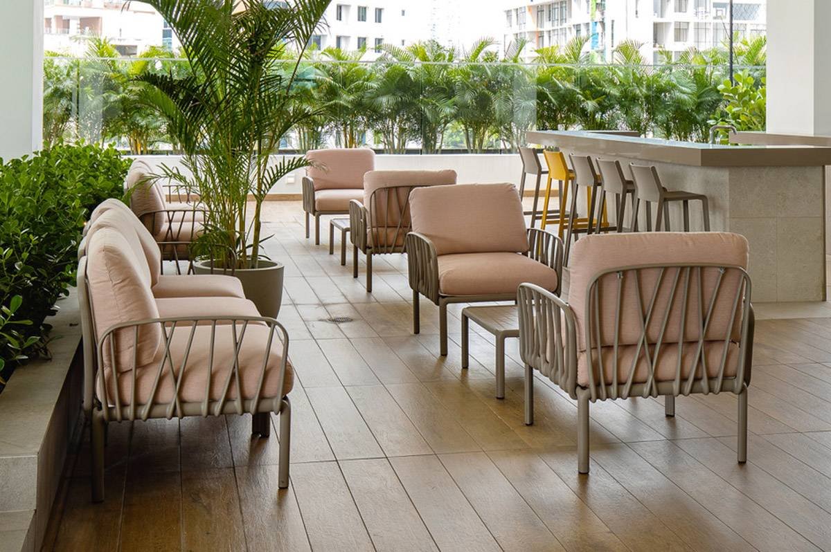 Квадратный стол Cube 80 подходит для использования в помещении и на открытом воздухе, а также прекрасно впишется в открытые площадки возле бассейнов, террас баров и ресторанов. Он представлен с каркасом из окрашенного алюминия и квадратной столешницей из DurelTop. Это новая производственная система для столешниц, разработанная для достижения высочайшего уровня практичности, прочности, надежности и элегантности. Алюминиевый каркас обеспечивает сильное сопротивление и прочность.
