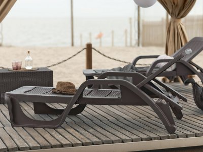 Шезлонг-лежак Nilo сделан из качественного полипропилена и способен выдерживать нагрузки до 120 кг.